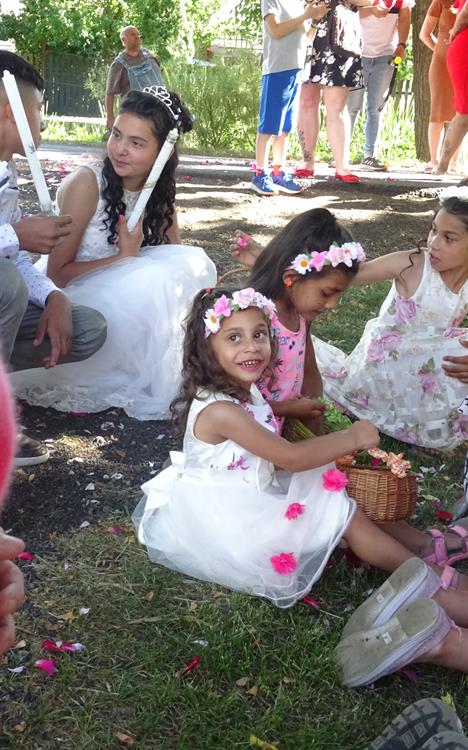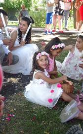 které házením květin vytvářely koberec, po kterém šel kněz s Pánem Ježíšem