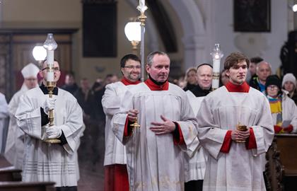 Nemohli jste být v katedrále na půlnoční? Nevadí - byla tam Jana Chadimová a zachytila ji ve fotografiích. Bohoslužbu v katedrále sv. Štěpána celebroval biskup Stanislav Přibyl.