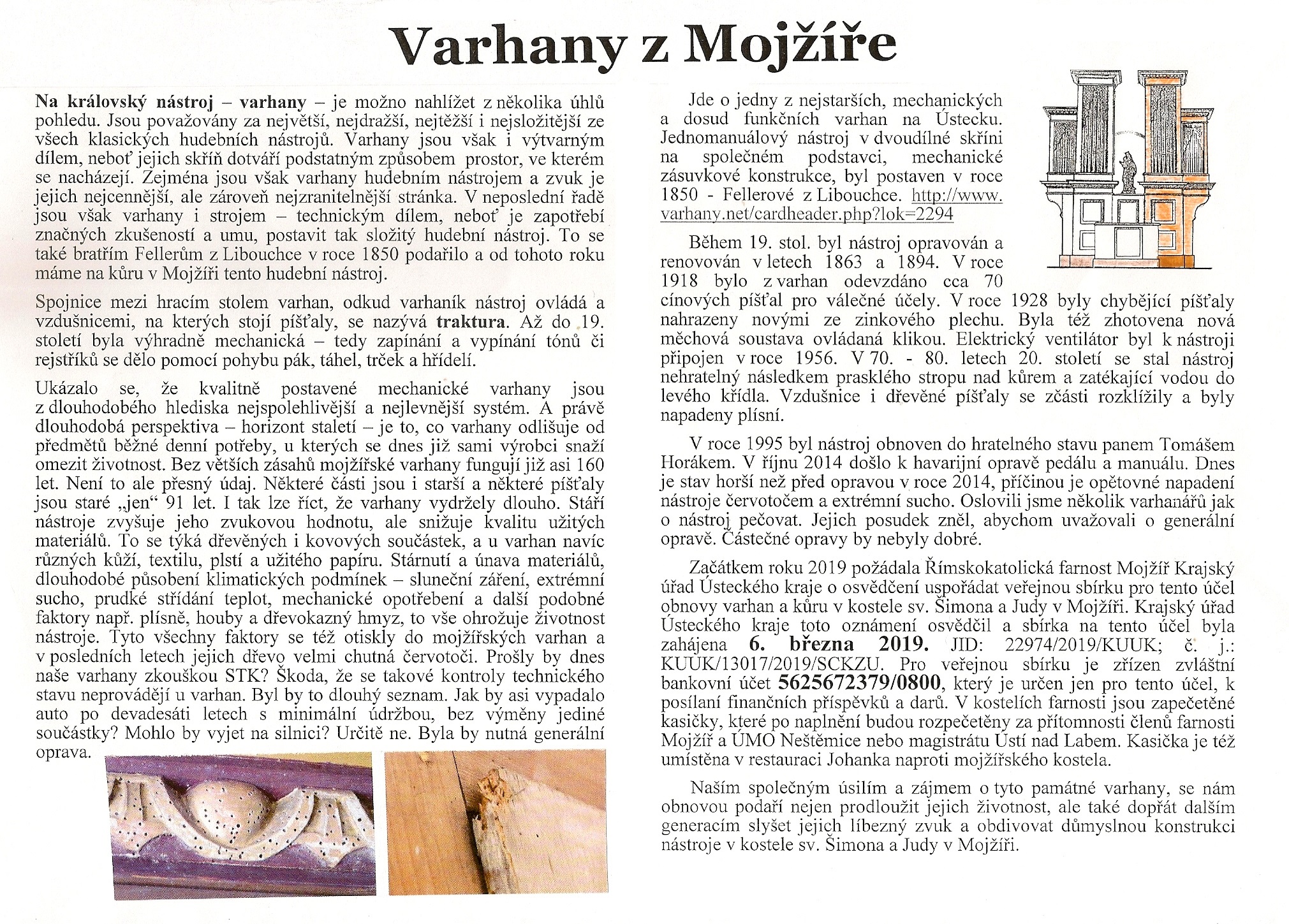 Mojžíř - Obnova varhan a kůru v kostele sv. Šimona a Judy v Mojžíři (více o varhanách)