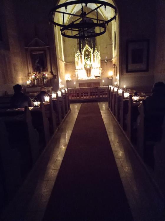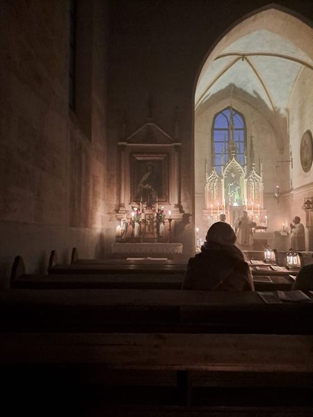 Ze středečních rorátů v kostele sv. Barbory v Otvicích, obětovaných za novorozenou Aničku. Celebroval P. Šimon Polívka. Děkujeme Pánu Bohu, Panně Marii a všem, kdo si dnes přivstali...