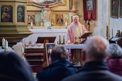 O 4. neděli postní (laetare), 10. března 2024, sloužil P. Mgr. Vilém M. Štěpán O.Praem. v kostele sv. Martina v Domoušicích zádušní mši svatou za zemřelého pana Tomáše Chaloupka, bývalého zastupitele a člena rady města Louny. Pan Chaloupek působil od roku 1990 v komunální politice za KDU-ČSL. Zároveň byl dlouholetým obětavým předsedou Klubu českých turistů při TJ Lokomotiva Louny.