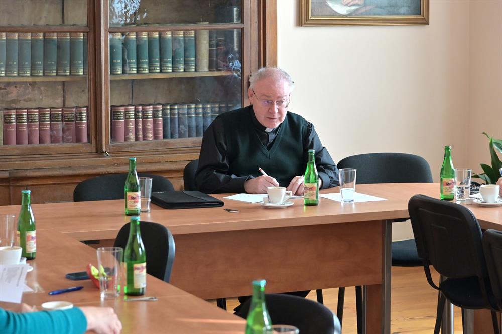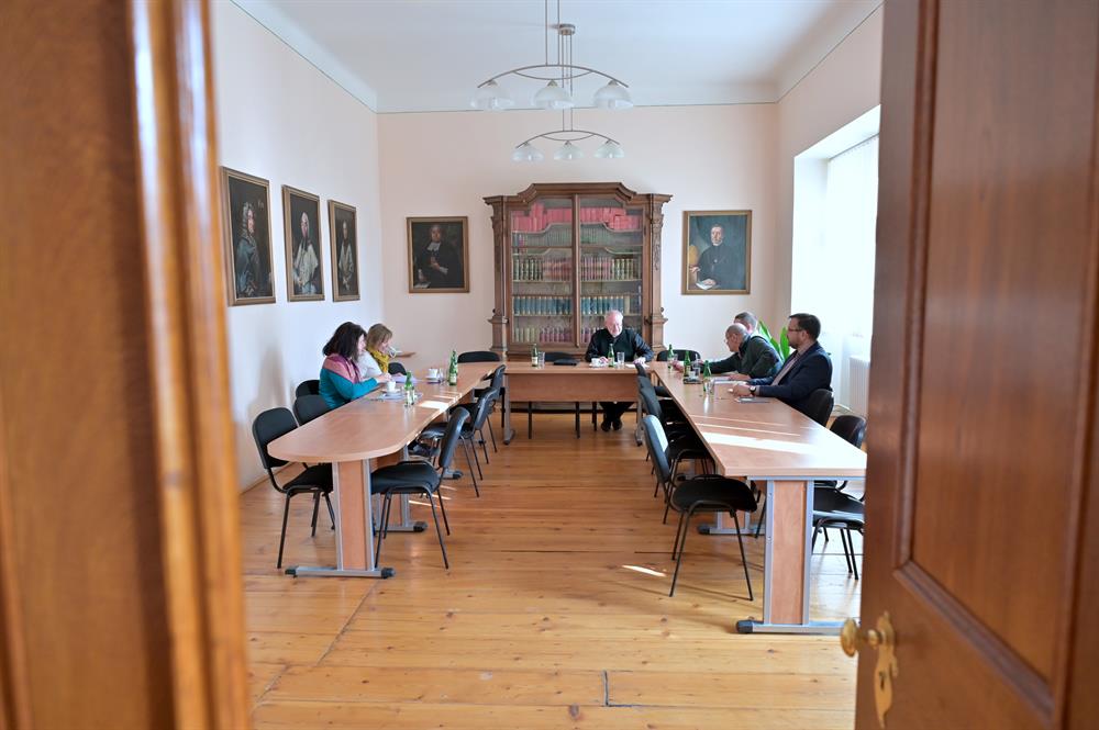 Ve čtvrtek 13. října 2022 od 10 hodin zasedali vedoucí odborů litoměřické biskupské kurie. Generální vikář Mons. Martin Davídek seznámil přítomné s informacemi ze setkání generálních vikářů, které proběhlo o den dříve na ČBK a také kancléř biskupství podal informace týkající se datových schránek a softwaru pro farnosti ze sekce IT při ČBK. Jednotliví vedoucí odborů pak podali aktuální informace o dění ve svých odděleních. Příští zasedání se bude konat za čtrnáct dní rovněž v budově diecézní kurie.