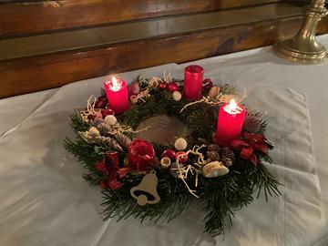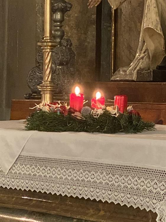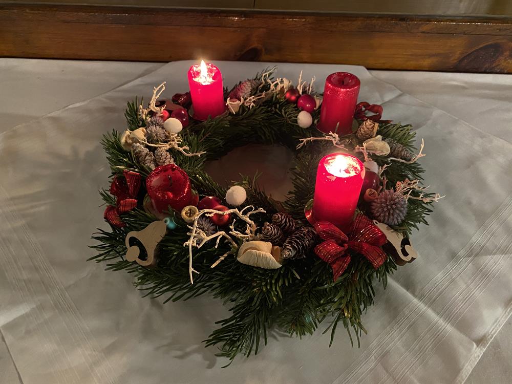 „Gaudete in Domino semper“ („Vždy se radujte v Pánu“), se na adventním věnci
