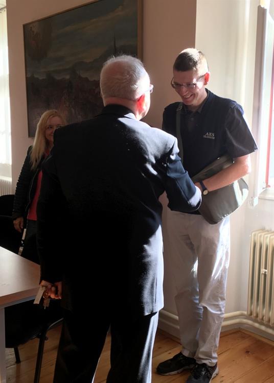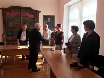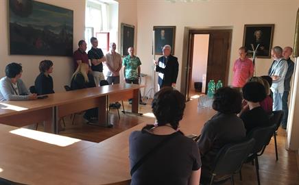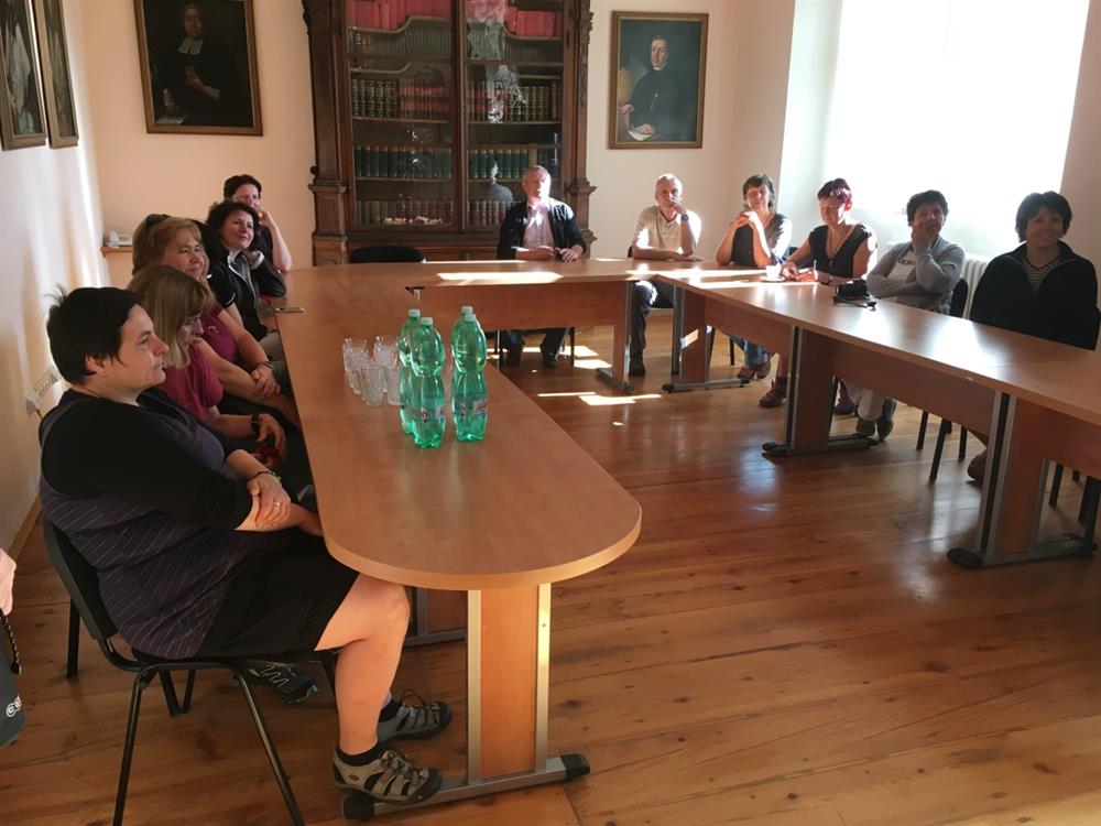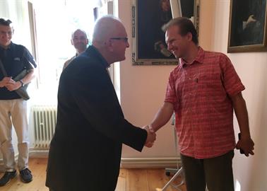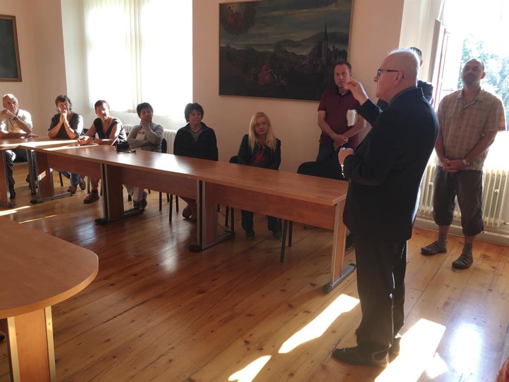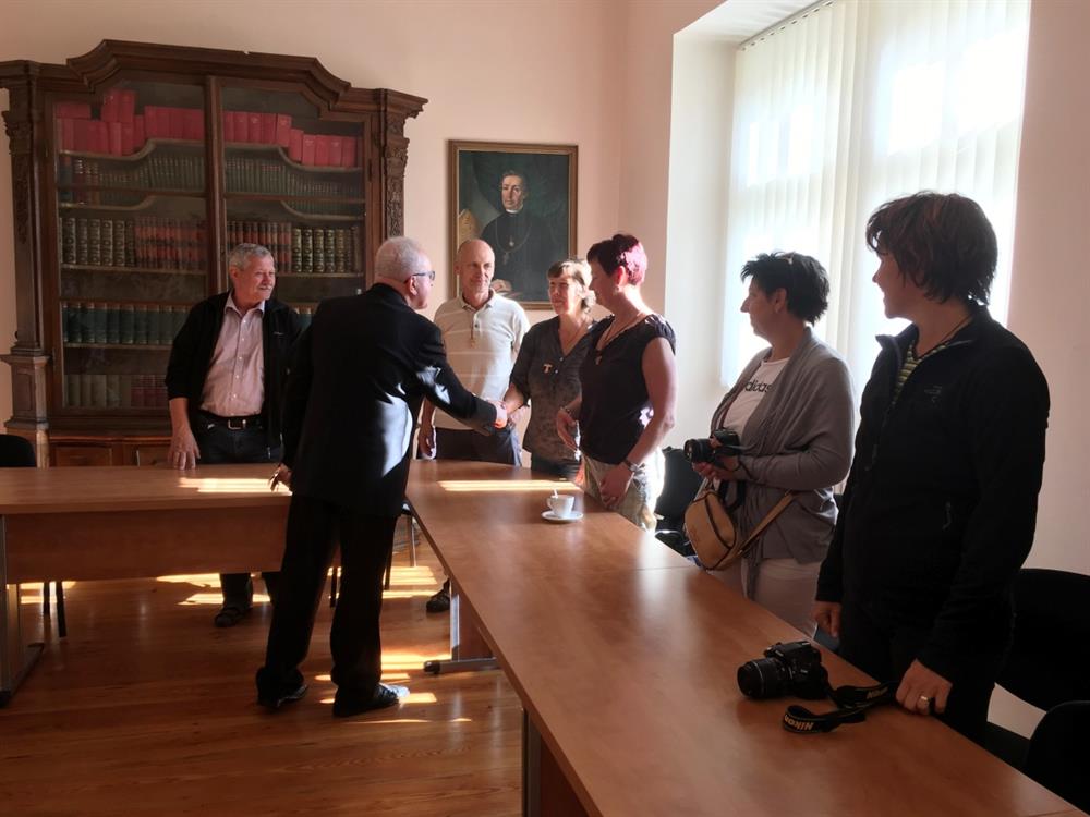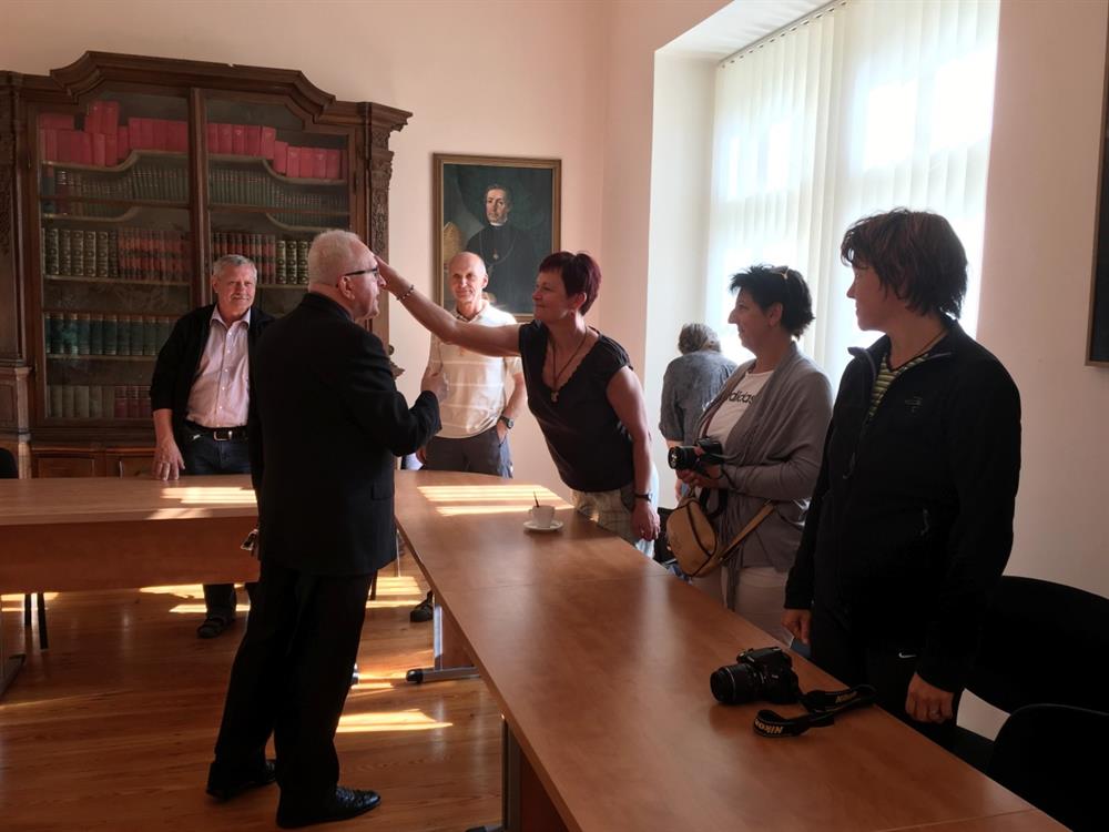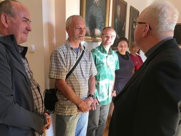 Setkání Mons. Jana Baxanta, biskupa litoměřického, s poutníky z Římskokatolické farnosti Nanebevzetí Panny Marie ve Žďáru nad Sázavou II. doprovázených farářem P. Vladimírem Vojtěchem Záleským a jáhnem Tomášem Maradou, 23. srpna 2017, biskupská kurie, Litoměřice