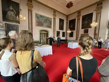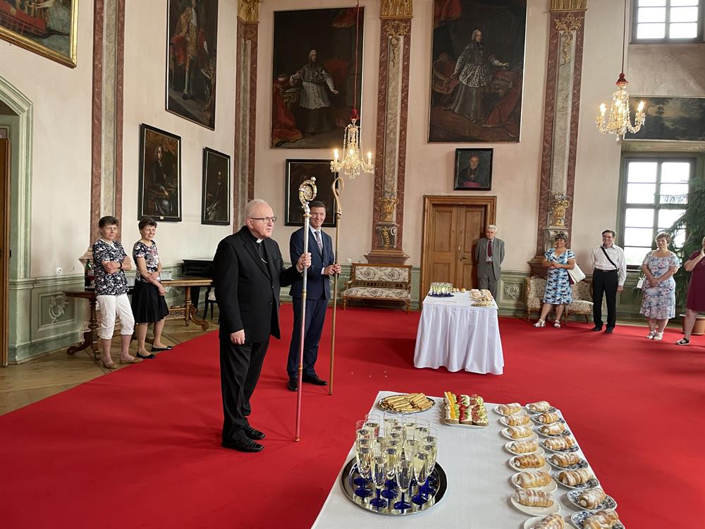 a prohlídky rezidence ukázal litoměřický biskup přítomným některé pontifikálie,
