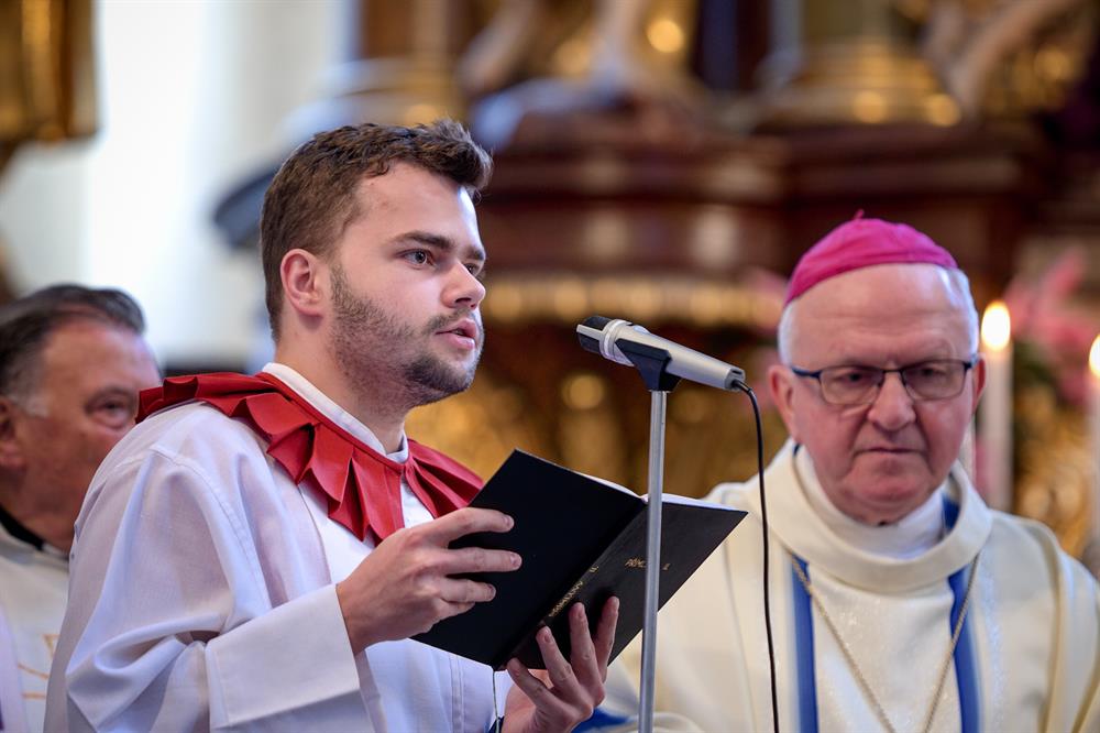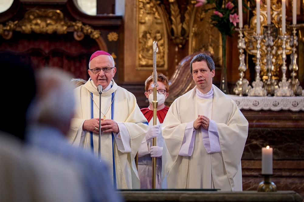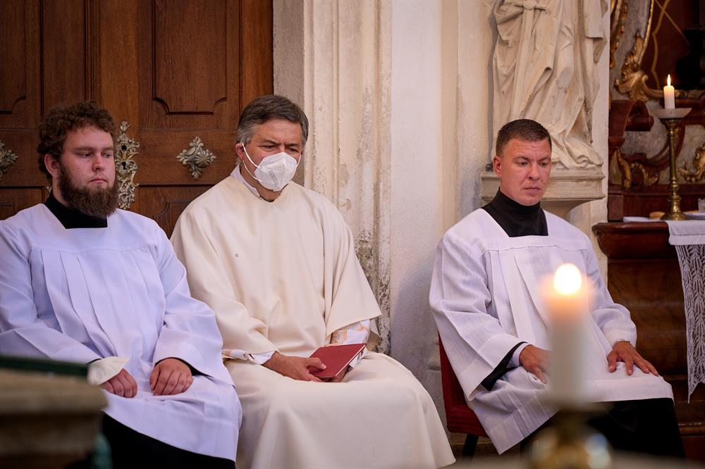 kanovník Werner Horák, lounský děkan Vít Machek a postoloprtský děkan Radim