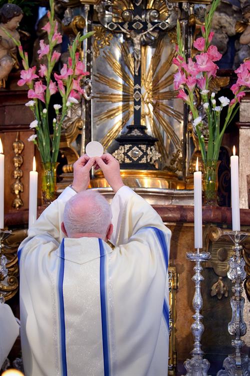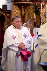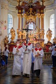 Baxanta. Koncelebranty byli kněží z okolních farností - osobní arciděkan,