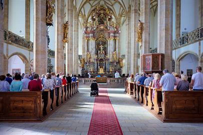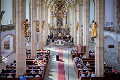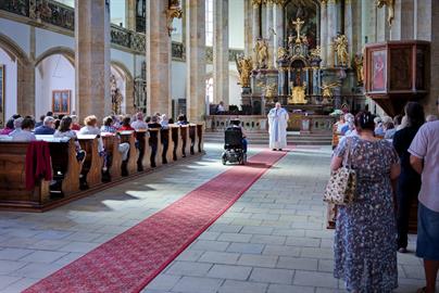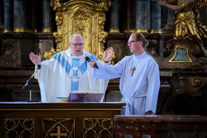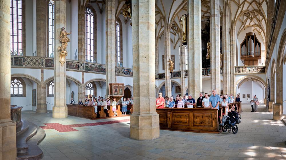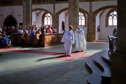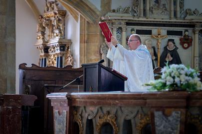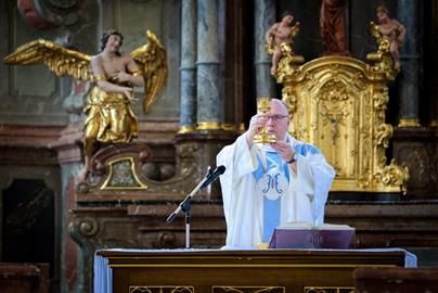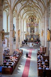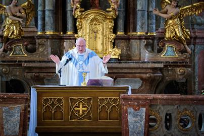 Nanebevzetí Panny Marie mší svatou ve známém pozdně gotickém kostele s tímto