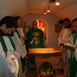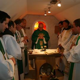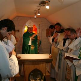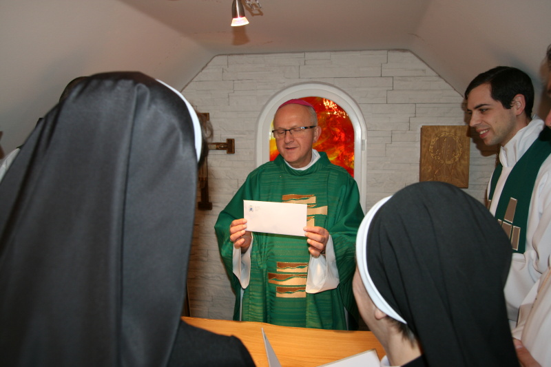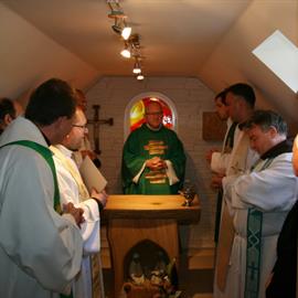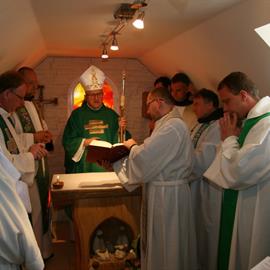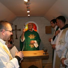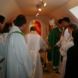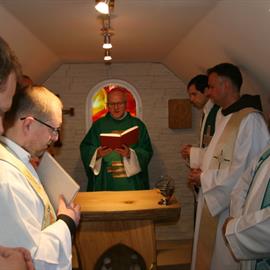 slavnost posvěcení kaple pro řádové sestry františkánky, které od září letošního roku působí v Liberci; mše svatá s litoměřickým biskupem Mons. Janem Baxantem, kněžími libereckého vikariátu a sestrami františkánkami; 3. října 2013, kaple Svaté rodiny, dům františkánů v ulici Na Perštýně, Liberec