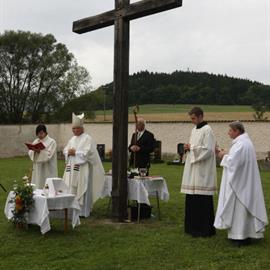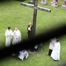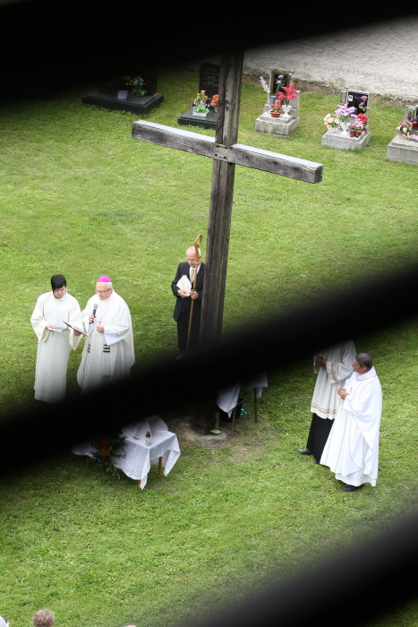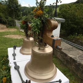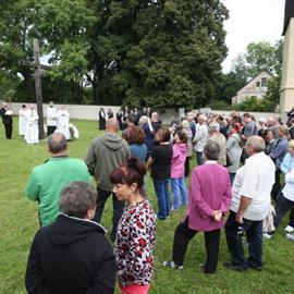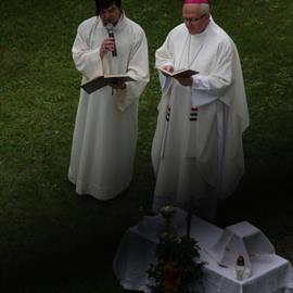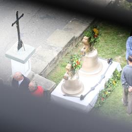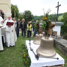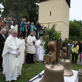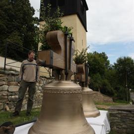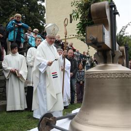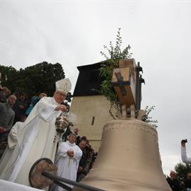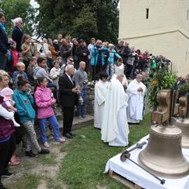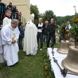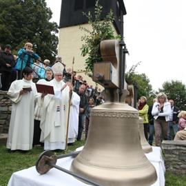 slavnost posvěcení dvou zvonů (Svatý Josef a Panna Maria) pro merboltickou zvonici, slavnostní bohoslužba celebrovaná litoměřickým biskupem Mons. Janem Baxantem, instalace zvonů do věže, 23. srpna 2014, Merboltice