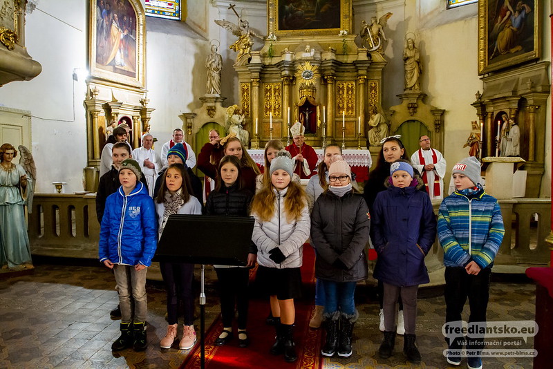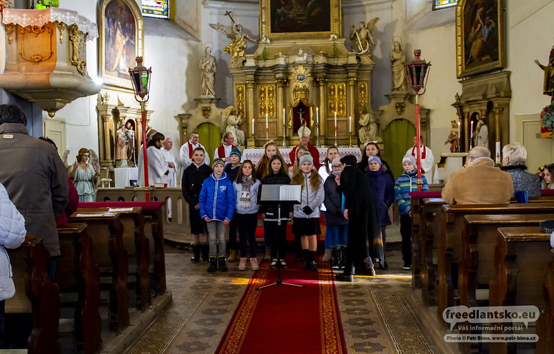Jindřichovicích pod Smrkem. Mši zpěvem doprovodil dětský sbor pod vedením