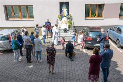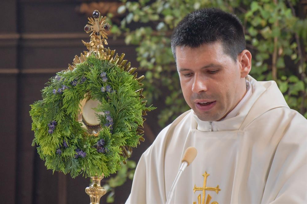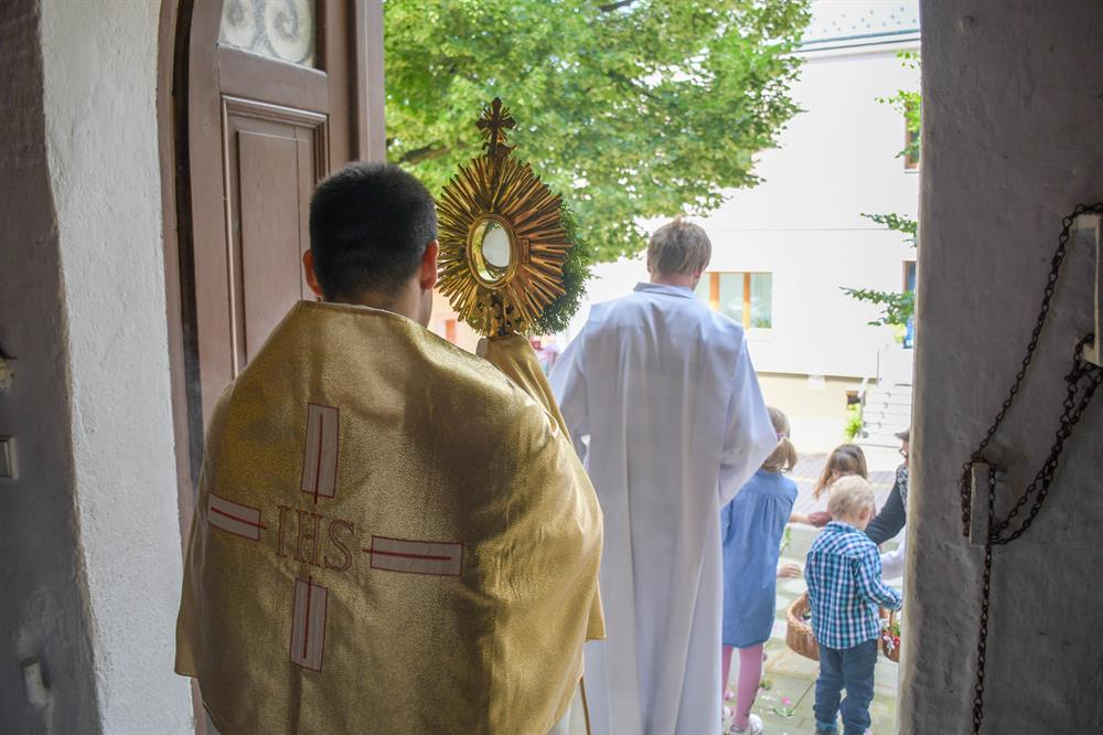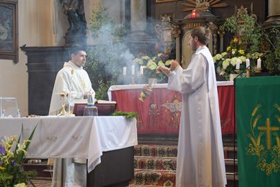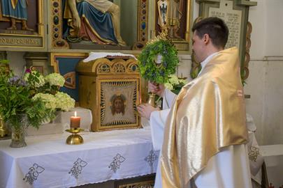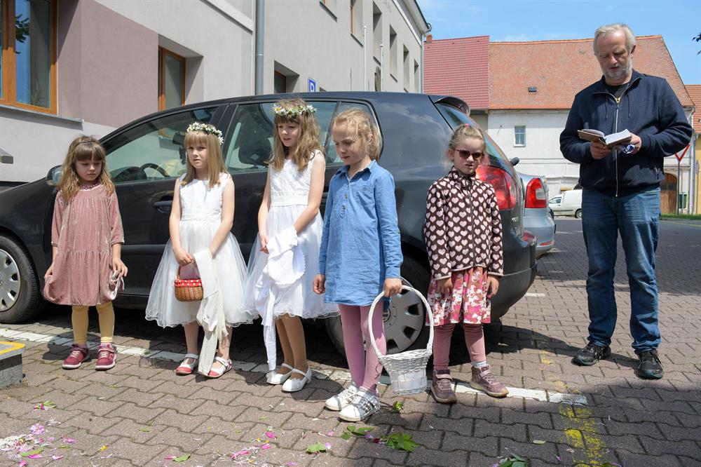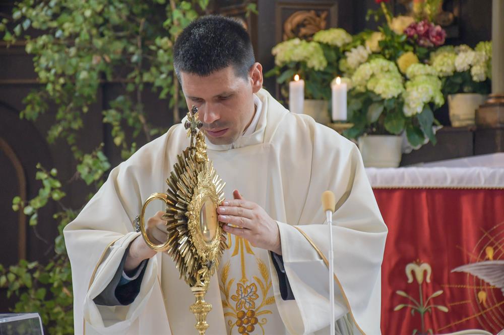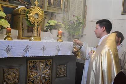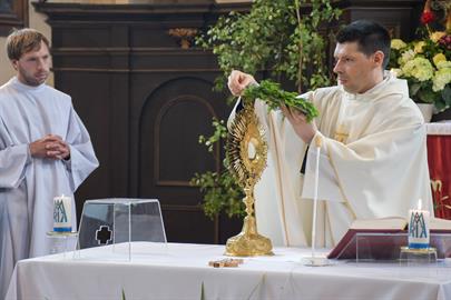 Slavnosti Těla a Krve Páně v kostele Narození Panny Marie v Třebenicích v neděli 2. června 2024 předsedal farář R.D. Lukáš Hrabánek. Věřící se po mši svaté v eucharistickém průvodu pomodlili u čtyř oltářů.