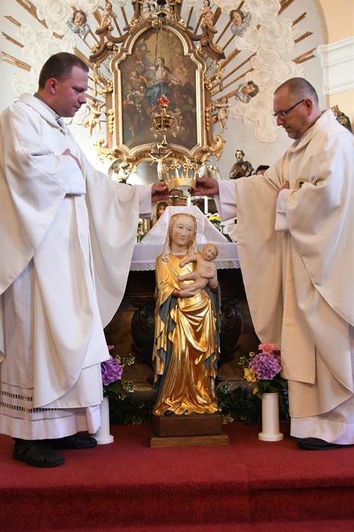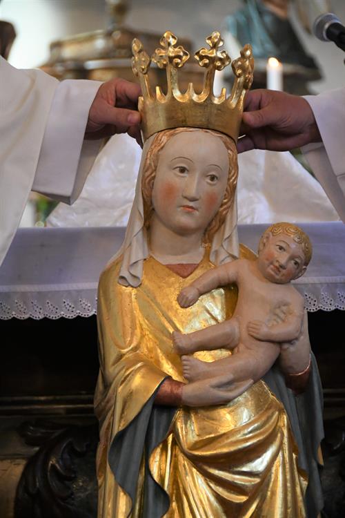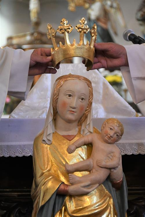 příležitosti byla znovu korunována čerstvě zrestaurovaná vzácná socha