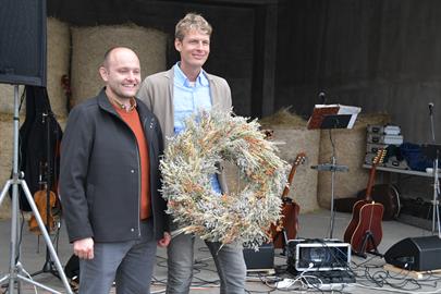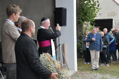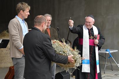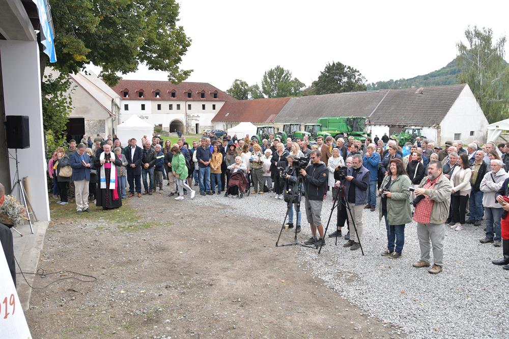 Po skončení vzpomínkového aktu pozvali zástupci Asociace soukromého zemědělství ČR přítomné na dožínkovou slavnost, která se konala v obci Blíževedly v objektu Statek Vodňanský s.r.o. V Blíževedlech pak při bohoslužbě slova požehnal generální vikář Mons. Davídek dožínkový věnec.