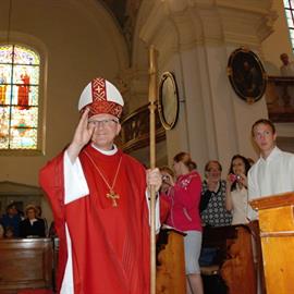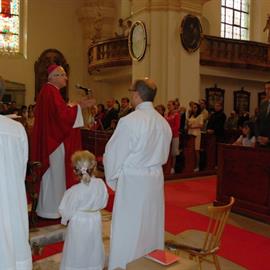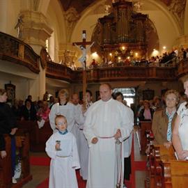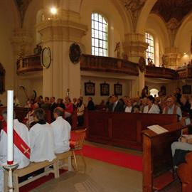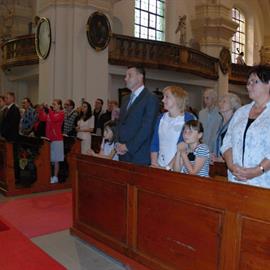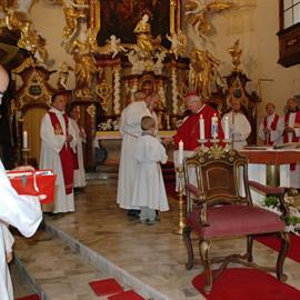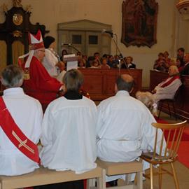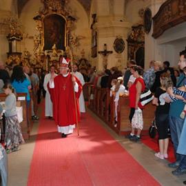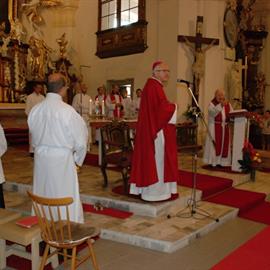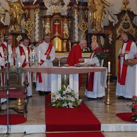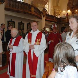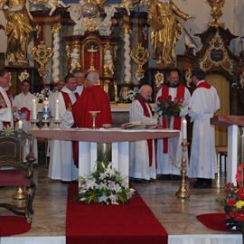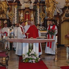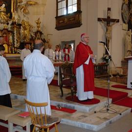 poutní slavnost, hlavní celebrant mše svaté litoměřický biskup Mons. Jan Baxant (poděkování P. Tomáši Pavlu Genrtovi OFM za více než čtyřicet let duchovní správy ve farnostech zdejšího kraje, přivítání nového administrátora farností R.D. ICLic. Radka Vašinka), 25. srpna 2013, kostel sv. Bartoloměje, Hrádek nad Nisou