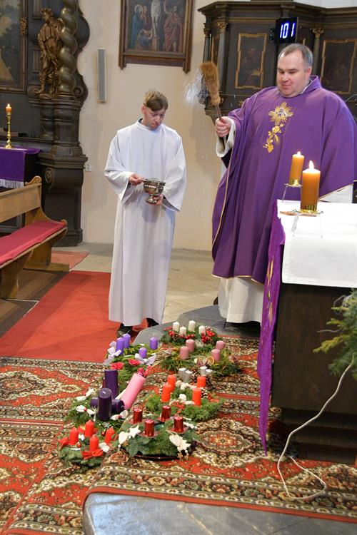 Slavnostní požehnání a zapálení 1. svíčky na adventních věncích
