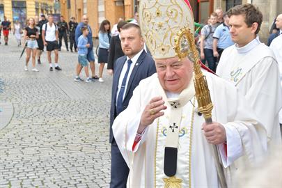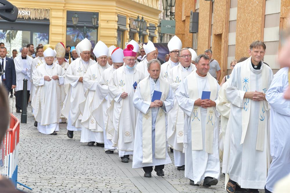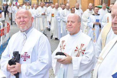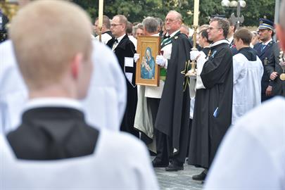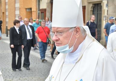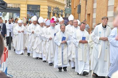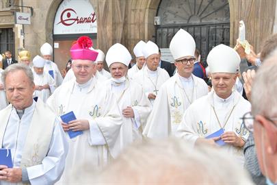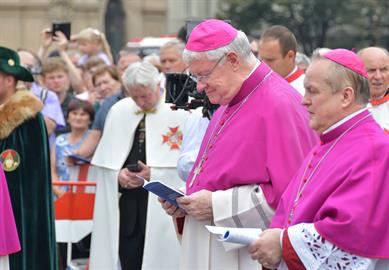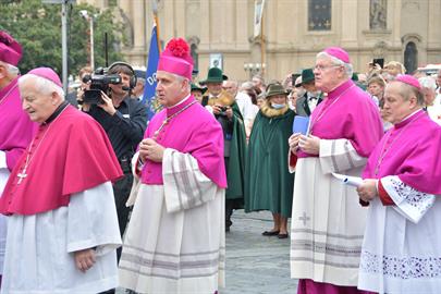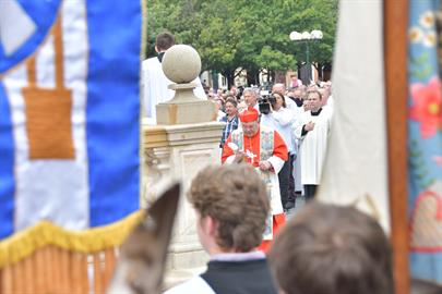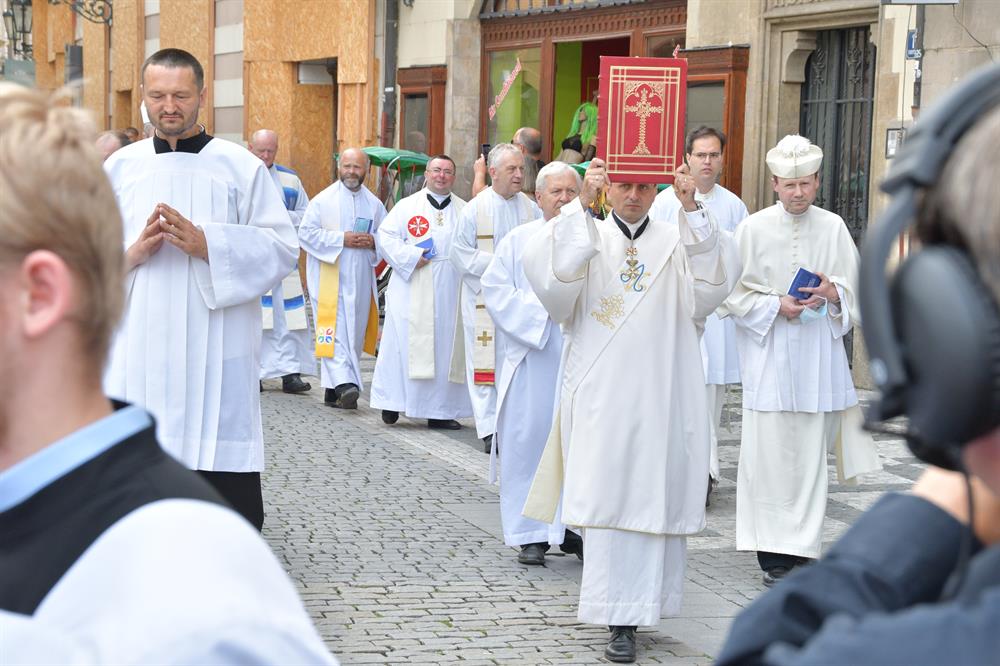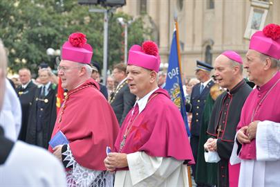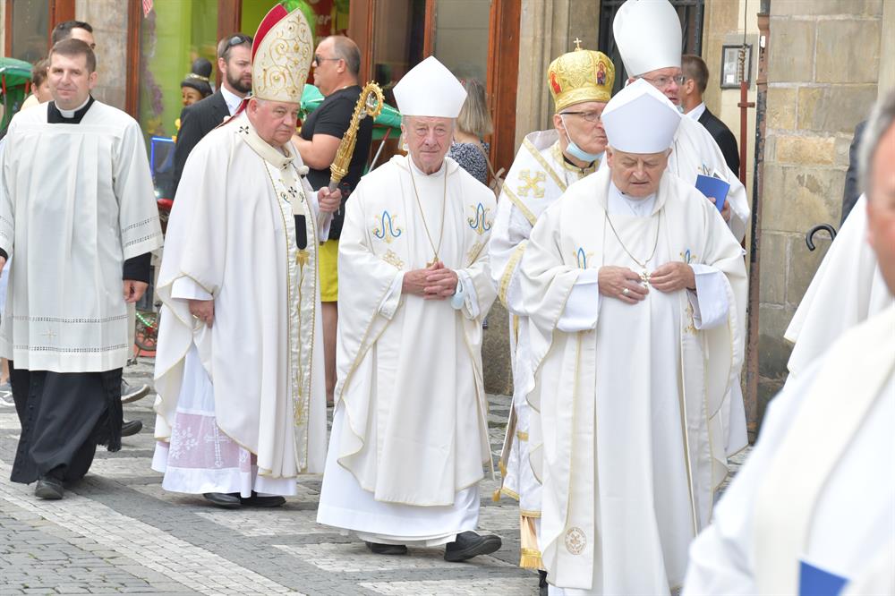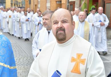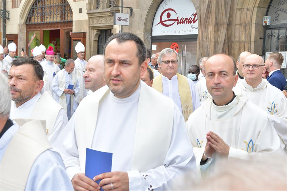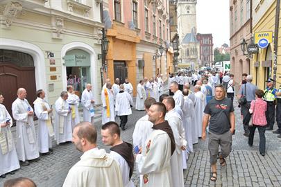 V sobotu 15. srpna 2020, na svátek Nanebevzetí Panny Marie, se na Staroměstském náměstí v Praze konala slavnost posvěcení znovuobnoveného Mariánského sloupu za přítomnosti velkého množství věřících. Hned na úvod od 10 hodin začala bohoslužba v Chrámu Matky Boží před Týnem, kterou celebroval arcibiskup pražský a primas český Dominik kardinál Duka. Poté vyšel průvod zúčastněných biskupů, kněží, rytířských řádů, Orlů, krojovaných skupin a dalších hostů na náměstí k Mariánskému sloupu, který kardinál požehnal. Ve svém proslovu připomněl, že sloup se sochou Panny Marie není symbolem katolické zpupnosti, ale je výrazem vděčnosti za pomoc ve válkách, nemocech a těžkých časech. Ke slovu se dostali také další řečníci, např. starosta Městské části Praha 1 Ing. Petr Hejma, nebo autor repliky sloupu akademický sochař Petr Váňa. Mariánský sloup se tak vrátil na Staroměstské náměstí po 102 letech.