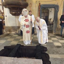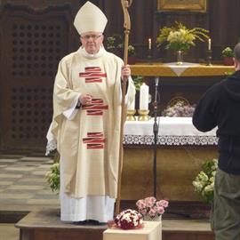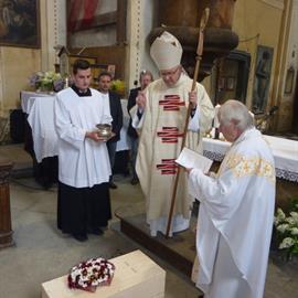 slavnostní uložení ostatků pánů z Bubna do krypty v kostele sv. Václava, mše svatá, litoměřický biskup Mons. Jan Baxant, 12. května 2013, Březno