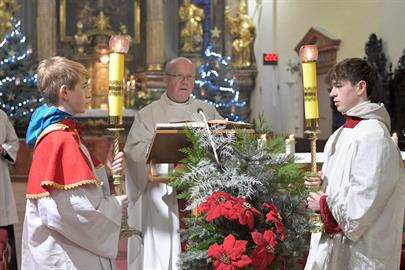 Na štědrý večer, v sobotu 24. prosince 2022 od 16 hodin, celebroval litoměřický biskup Mons. Jan Baxant štědrovečerní mši svatou v kostele Všech svatých v Litoměřicích. Koncelebroval děkan litoměřické farnosti U všech svatých J.M. can. ICLic. Józef Szeliga. Ve své promluvě se biskup Jan zamyslel nad skutečností, že máme jediného Spasitele a tím je Ježíš Kristus. To on z nás snímá tu nešťastnou myšlenku, že jsme ztraceni. „Spolehněte se na mě – v tom je ta vánoční naděje, že Ježíš je zachráncem světa, ví o situaci tohoto světa, ví o konkrétních podmínkách, ve kterých žijeme, spolehněme se tedy na Něj. Nechává nás sice, pro náš vlastní prospěch, projít všemi zkouškami, kterými on sám jako člověk procházel, ale s Ním neexistuje žádná situace, která by byla bezvýchodná. A my, smrtelníci ? Světu můžeme pomoci, když sami sebe zkrotíme a nebudeme si namlouvat, že svět zachráníme, když my sami se obrátíme k Pánu Bohu – svou duší, svým srdcem, když my se budeme snažit být lidmi lepšími, ušlechtilejšími. Dej Bůh, Boží Syn, Syn Panny Marie, aby o těchto Vánocích, které prožíváme se všemi okolnostmi, i těmi válečnými v nedaleké zemi, kéž bychom neztráceli naději a spoléhali na jediného Zachránce, jediného Spasitele – Ježíše Krista.“
