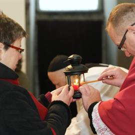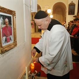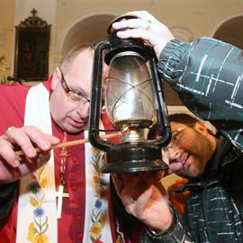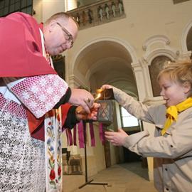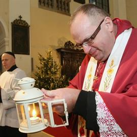 tradiční setkání skautů a veřejnosti, žehnání Betlémského světla, probošt katedrální kapituly a dómský farář Jiří Hladík O.Cr., 24. prosince 2012, katedrála sv. Štěpána, Litoměřice