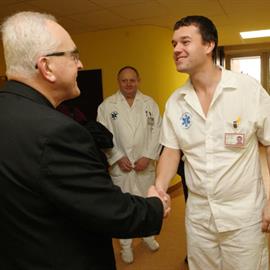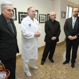 návštěva litoměřického biskupa Mons. Jana Baxanta Městské nemocnice v Litoměřicích (za účasti předsedy správní rady a výkonného ředitele Ing. Radka Lončáka, MBA, manažera pro lékařské zdravotnické obory MUDr. Jiřího Štveráka, MBA, a kardiologa MUDr. Milana Zbořila), setkání s pacienty a zaměstnanci nemocnice, 24. prosince 2013, Městská nemocnice Litoměřice