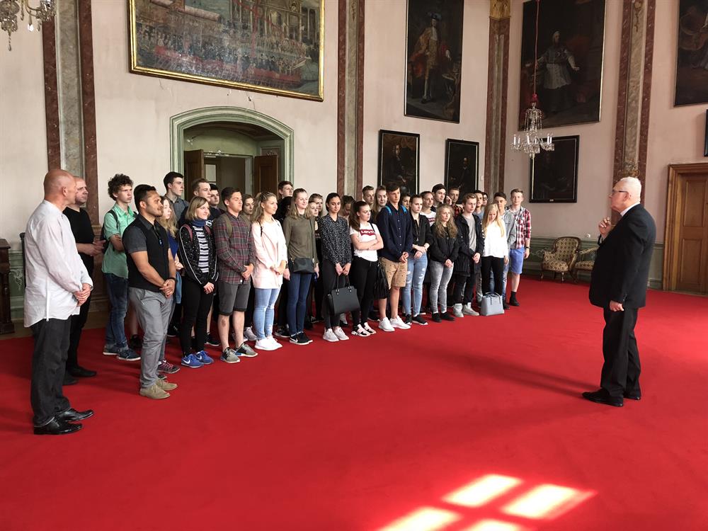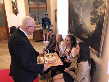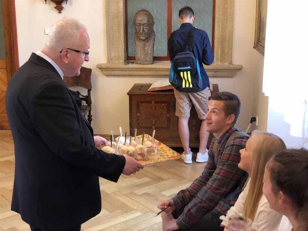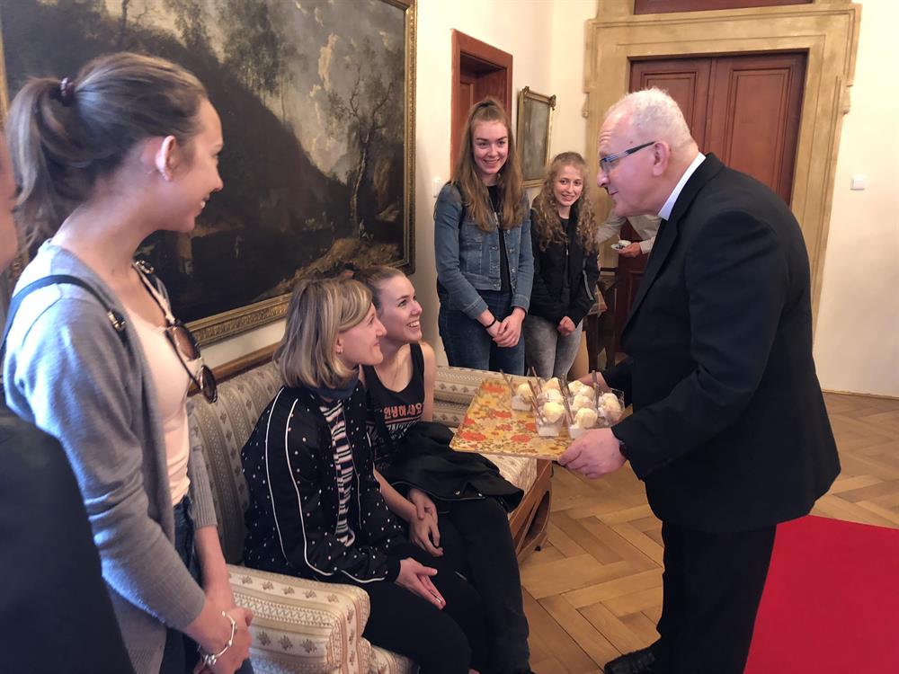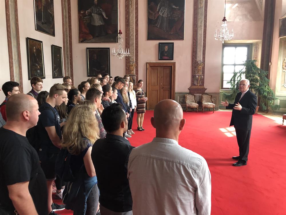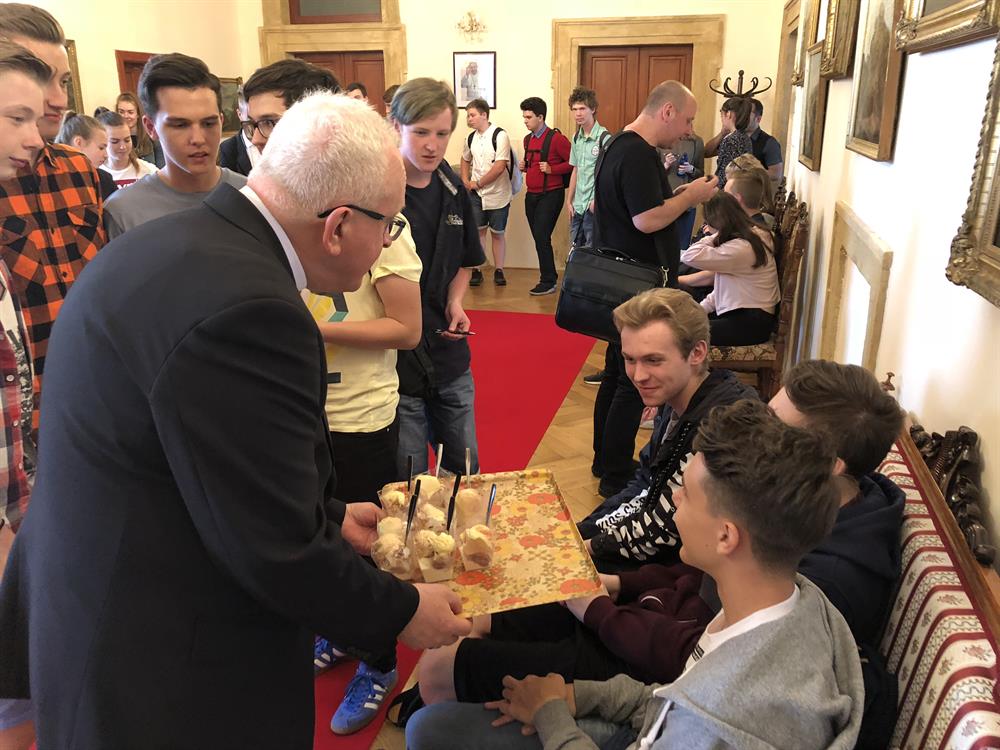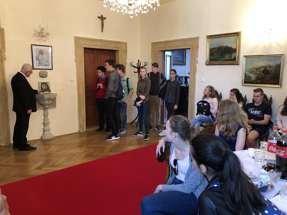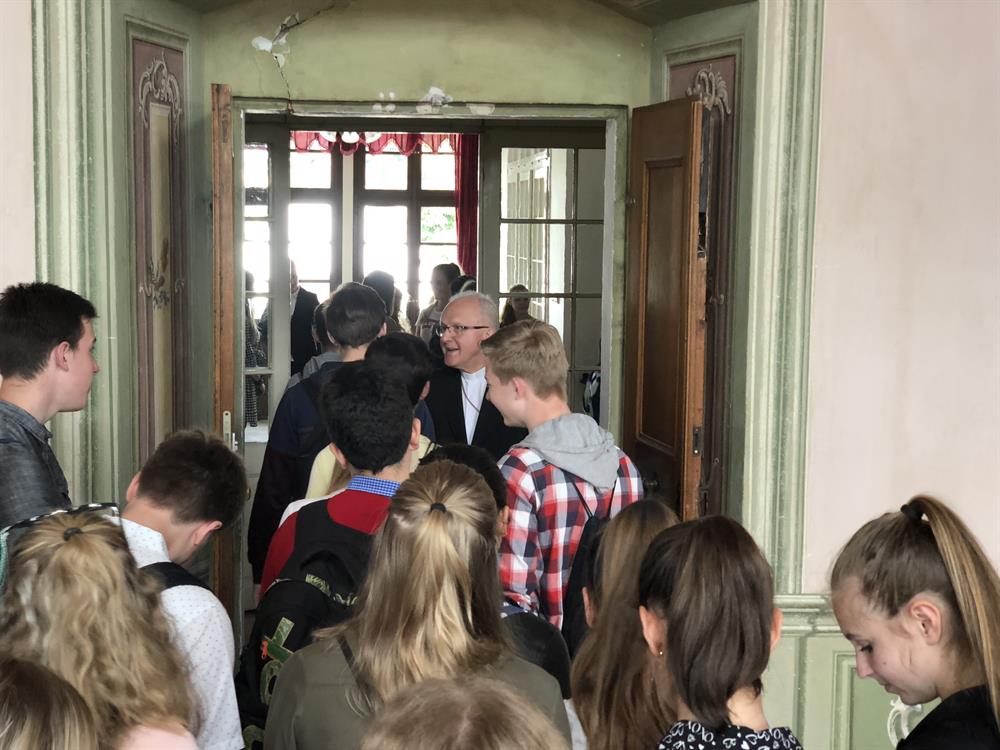 Ve čtvrtek 10. května 2018 navštívili studenti Biskupského gymnázia ve Varnsdorfu litoměřické biskupství. V dopoledních hodinách se setkali studenti a jejich vyučující v biskupské rezidenci s litoměřickým biskupem Mons. Janem Baxantem, který studenty povzbudil ve studiu, zvláště cizích jazyků, v úsilí o hledání správných duchovních cest i v dalším životě. Po tomto setkání si mladí hosté se svými učiteli prohlédli katedrálu sv. Štěpána a její věž. V závěru návštěvy v centru diecéze zavítali ještě na biskupskou kurii, po které je provázel archivář biskupství Mgr. Martin Barus.