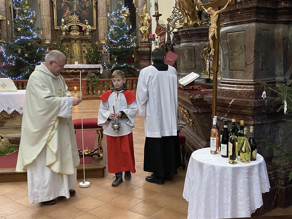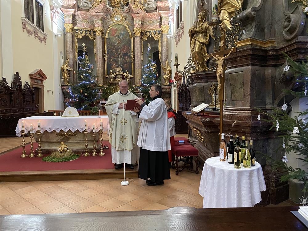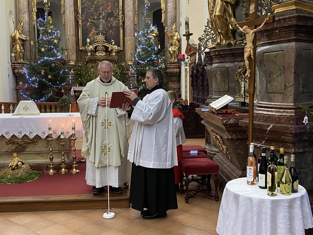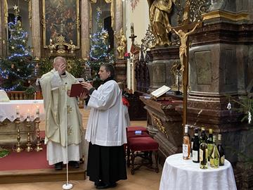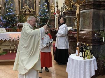svatá, na jejímž konci žehnal generální vikář Mons. Martin Davídek víno. Kázání