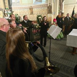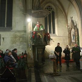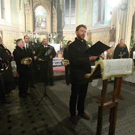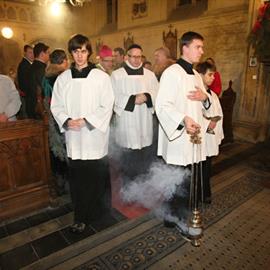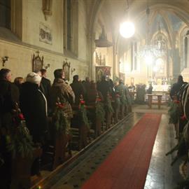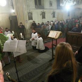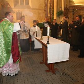 svatohubertská mše, celebroval probošt Katedrální kapituly u sv. Štěpána v Litoměřicích J. M. can. Jiří Hladík O.Cr., 13. leden 2012, kostel Narození Panny Marie, Libochovany