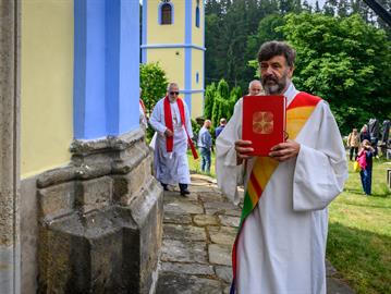 poutní mše svaté ke cti sv. Petra a Pavla bylo na prostranství před kostelem