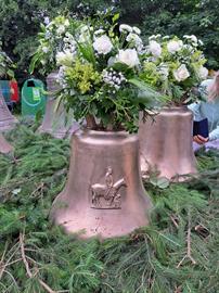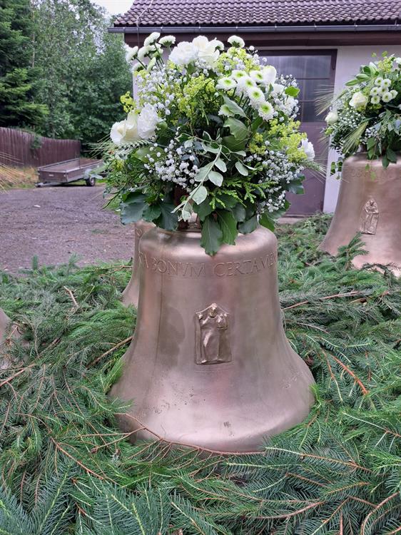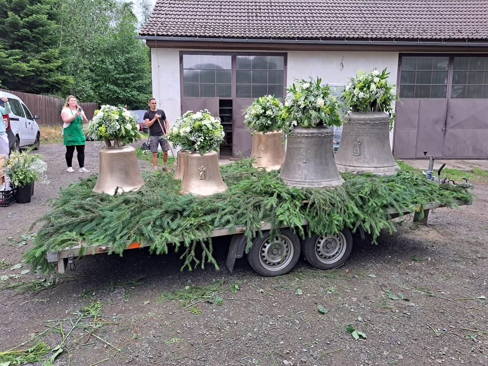 darované, zcela obnovené zvony z roku 1958 (sv. Walburga 280 kg, sv. Alžběta