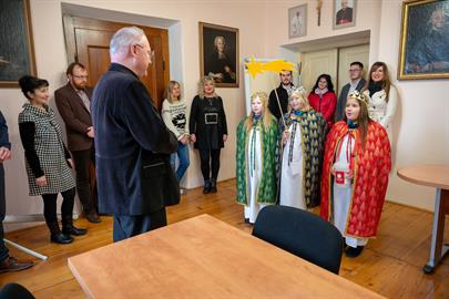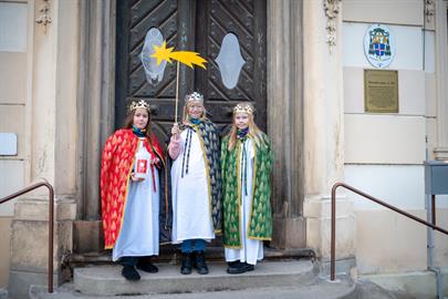 V pátek 5. ledna 2024 v 10.30 navštívili tříkráloví koledníci Diecézní charity Litoměřice diecézní kurii. "Tři králové“ zazpívali a z kuriálního prasátka (kasičky), kam zaměstnanci a návštěvníci kurii dali své tříkrálové dary, převzali do charitní kasičky, co v prasátku bylo. Přejeme všem charitním tříkrálovým koledníkům v litoměřické diecézi i v celé České republice hojnost požehnání i darů pro potřebné lidi. Kéž se lidská srdce otevírají všem, kdo pro druhé konají dobré věci a našimi kraji zní: „My tři králové jdeme k vám, štěstí zdraví vinšujem vám…“.