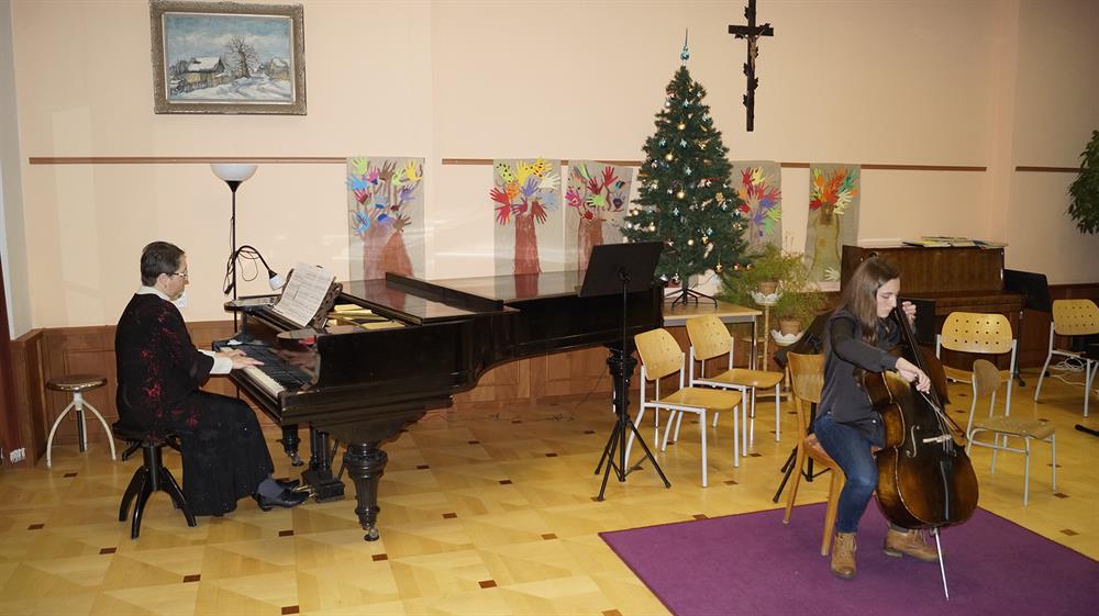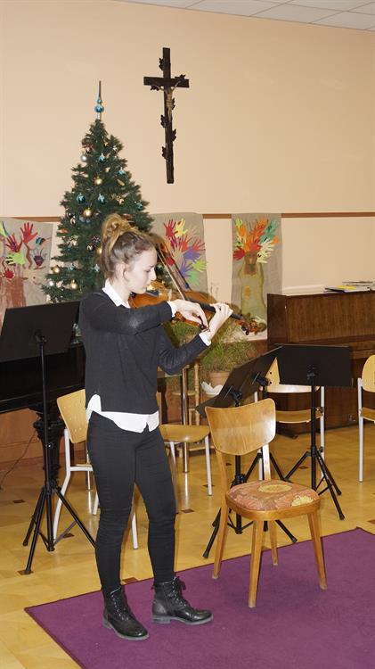 Seniorům zahráli a zazpívali postupně žáci: Lota Příhodová,