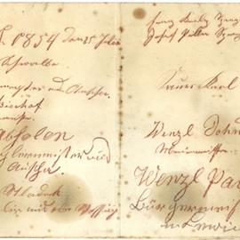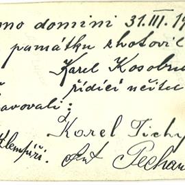 historické dokumenty z roku 1854 a 1936 uložené v tubusu, který byl objeven při opravě věže kostela Povýšení sv. Kříže, Levín na Litoměřicku