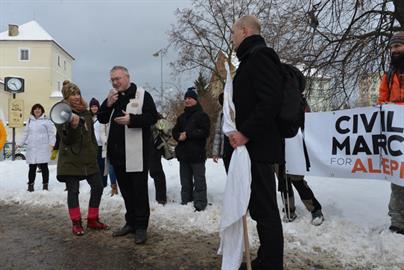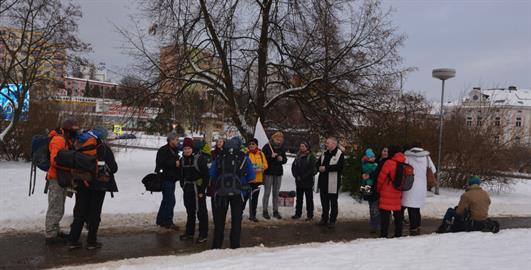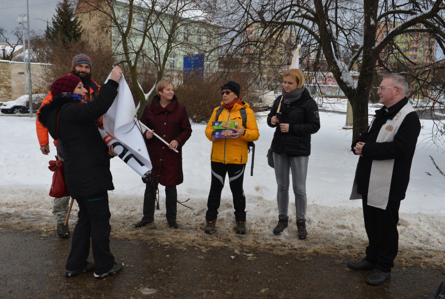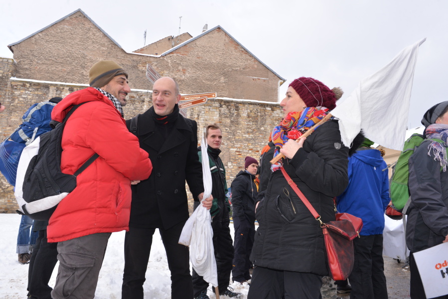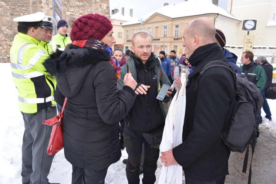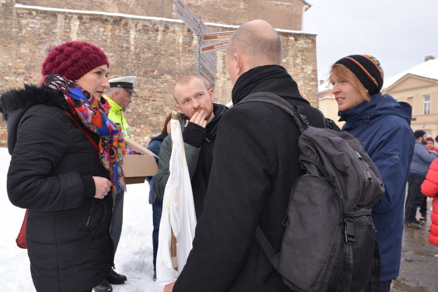 Civil March for Aleppo, setkání s generálním vikářem Mons. Martinem Davídkem, modlitba na cestu, 12. ledna 2017, U Bašty, Litoměřice