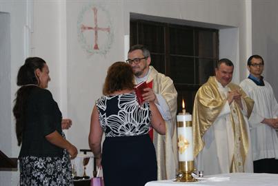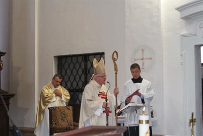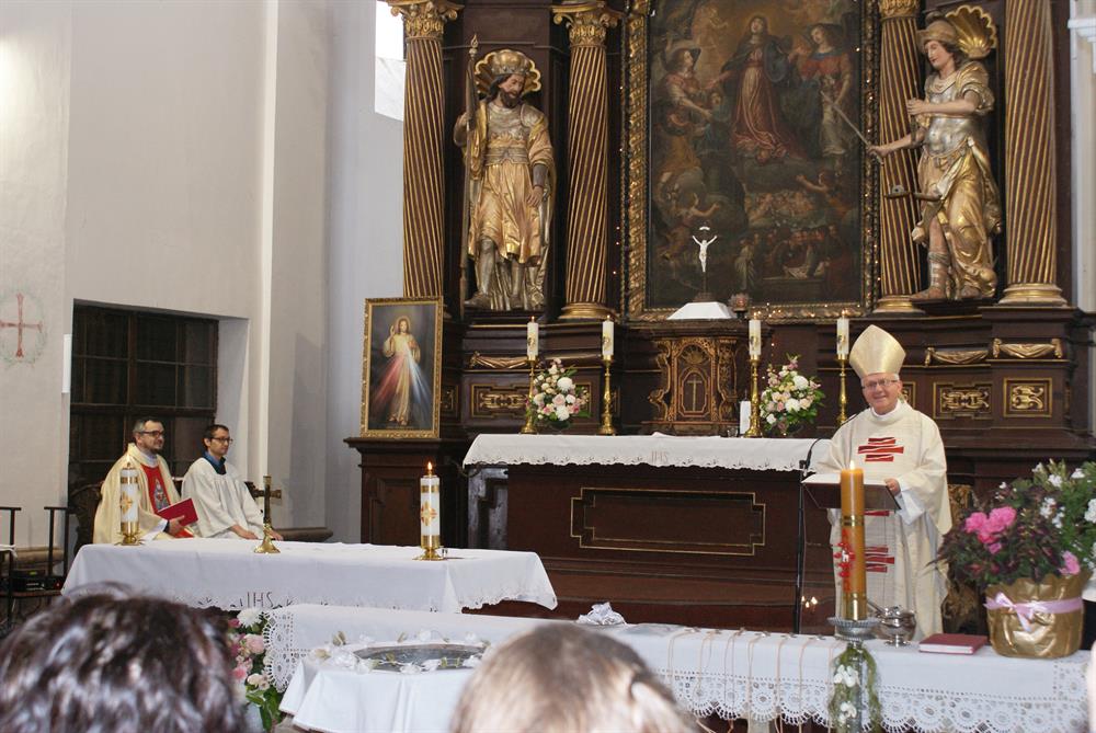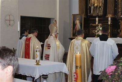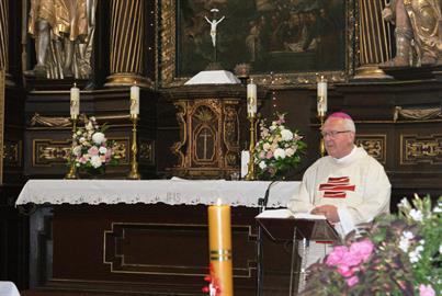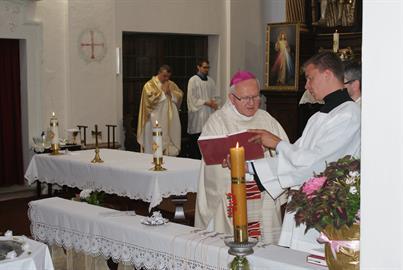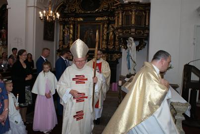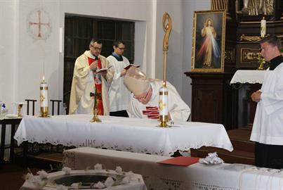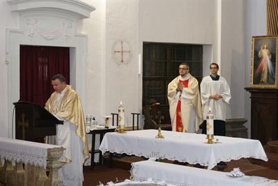 biskupem koncelebroval místní duchovní správce R.D. Artur Ściana a také farář