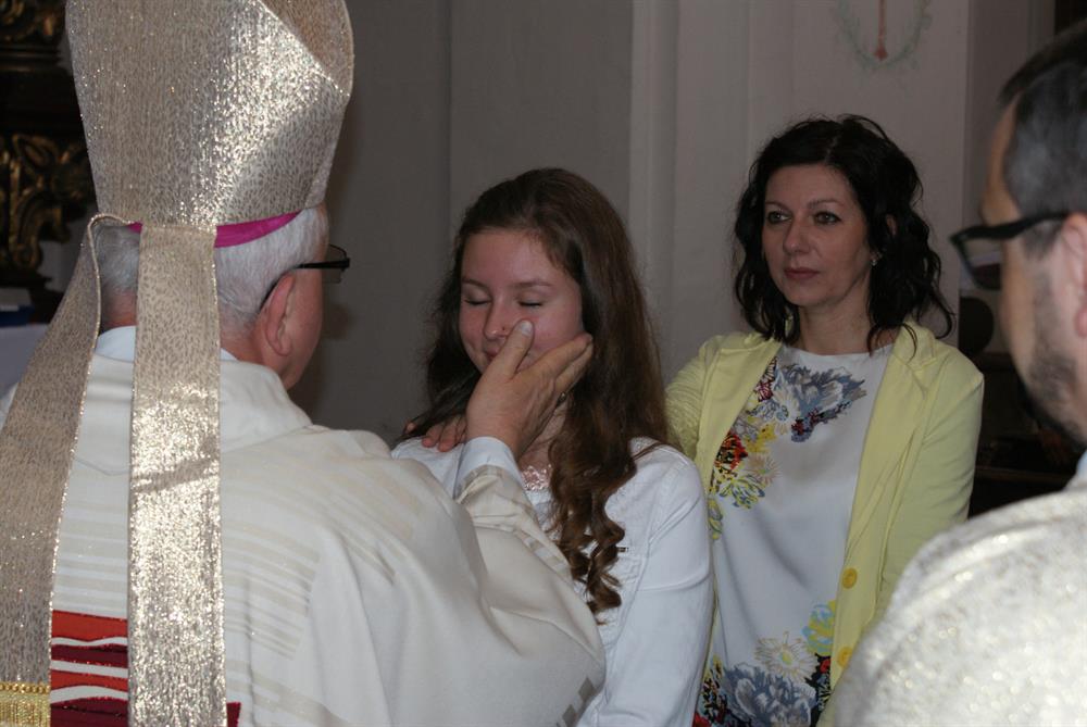 Udílení svátosti biřmování a první svaté přijímání v Klášterci nad Ohří