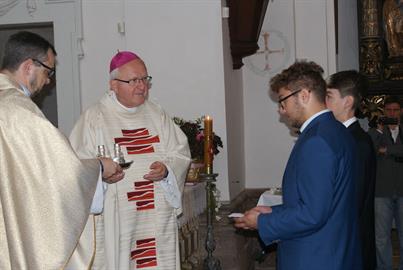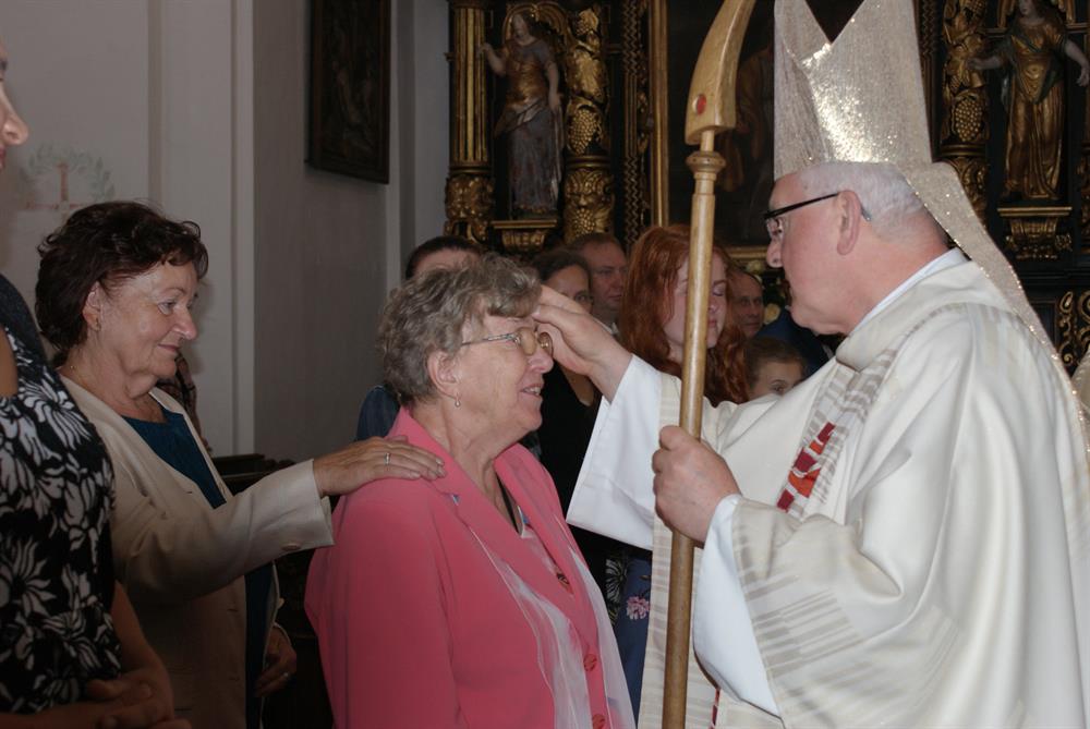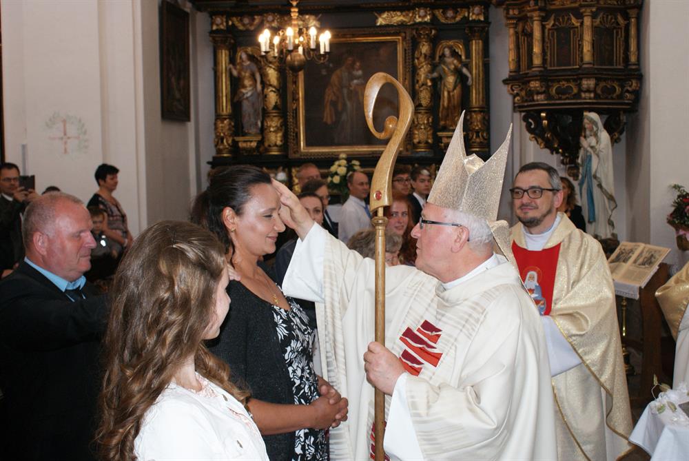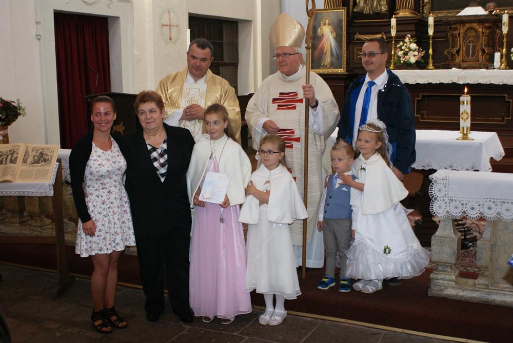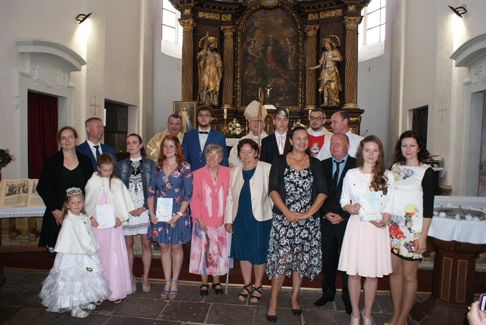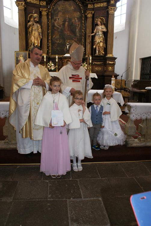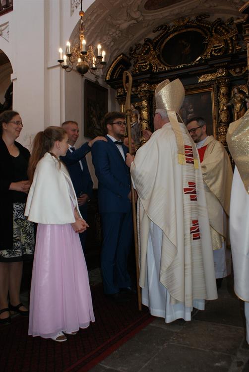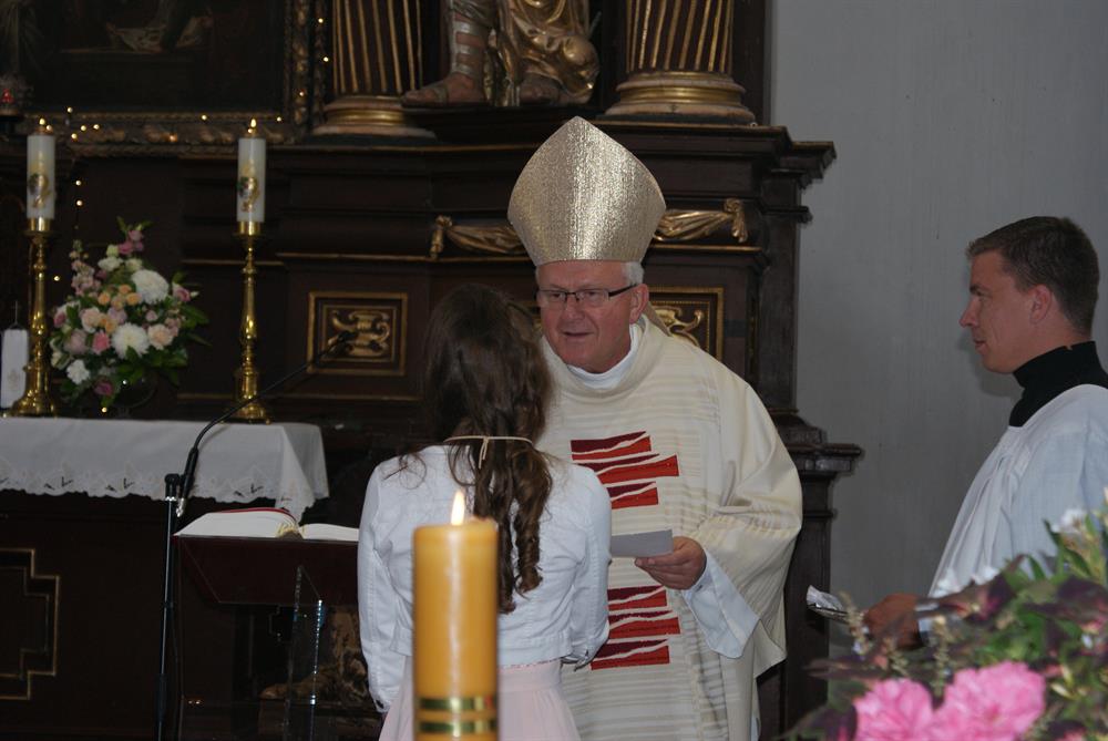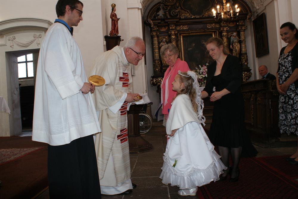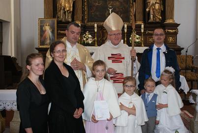 Mons. Jan Baxant svátost biřmování a také podával první svaté přijímání. S