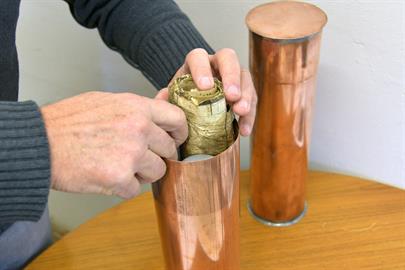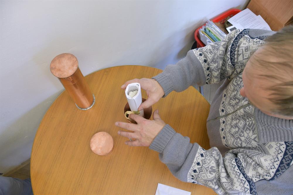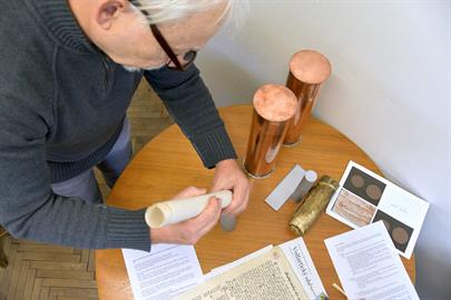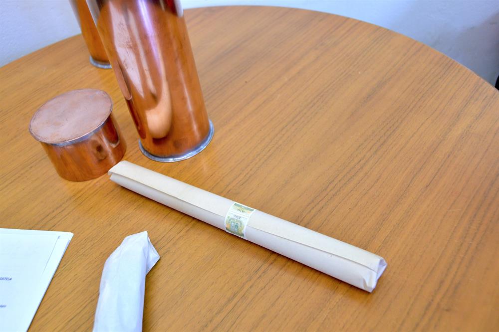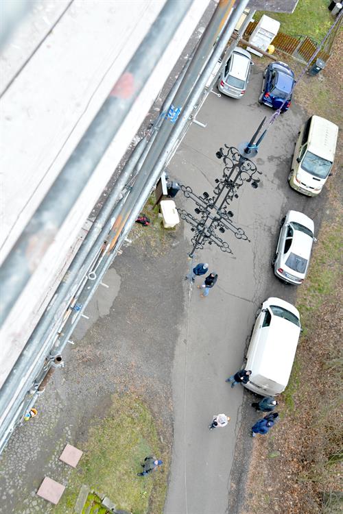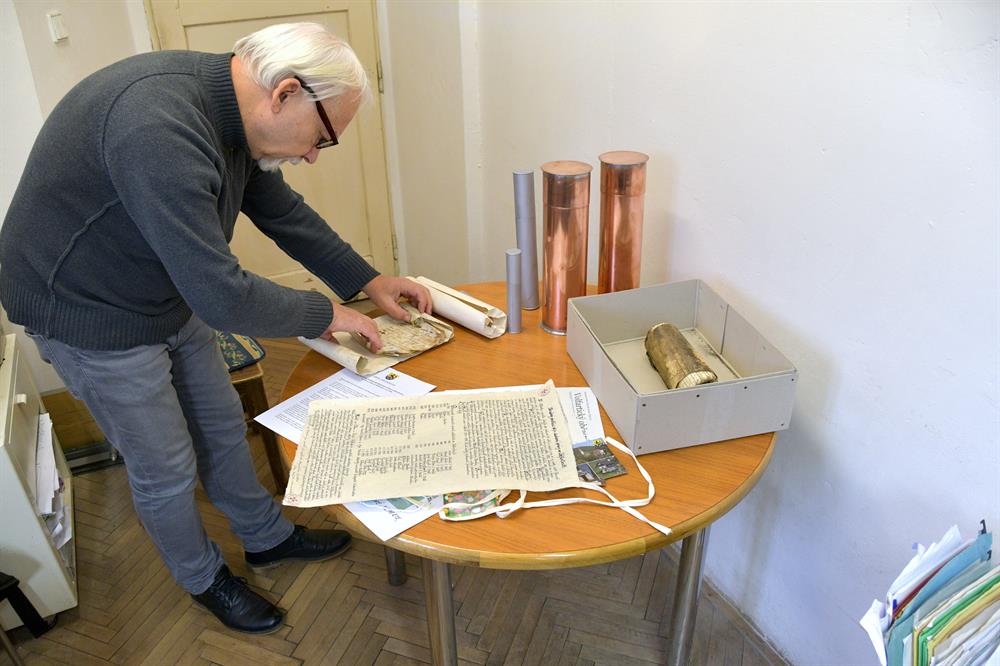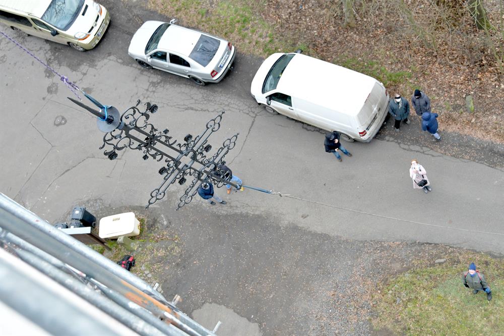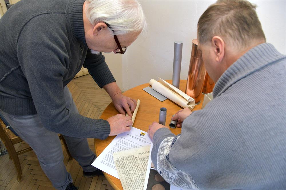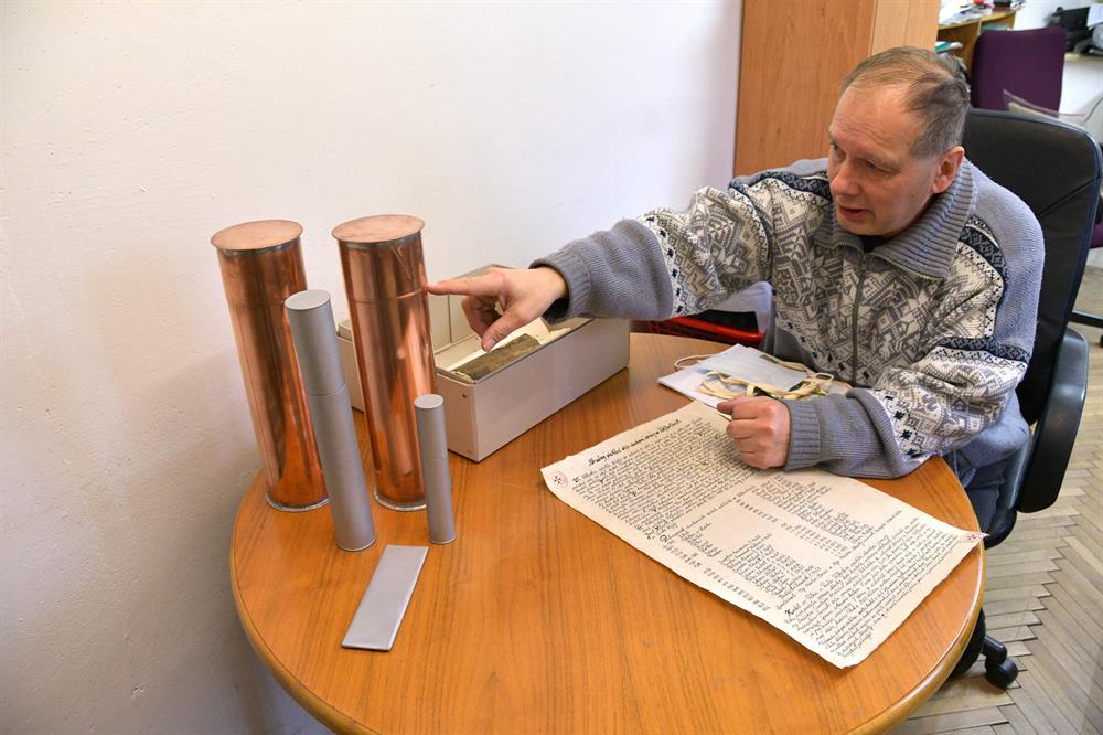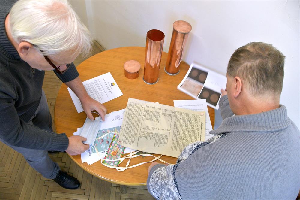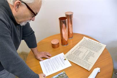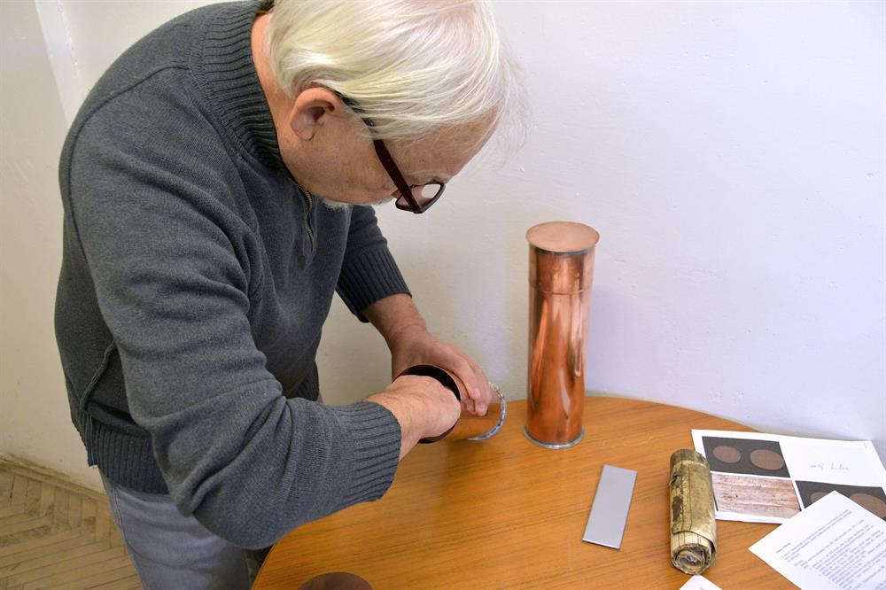Na fotografiích lze vidět archiváře litoměřického biskupství Mgr. Martina Baruse při přebírání dobových materiálů ke zkoumání a kopírování do biskupského archivu. Dále pak českolipského děkana J.M. can. Mgr. Wiliama Matějku se stavebním technikem Janem Součkem ve chvíli, kdy vkládají materiály do nově vyrobených tubusů a nakonec samotný akt vyzdvihování kříže na špici věže kostela s vkládáním časových schránek.