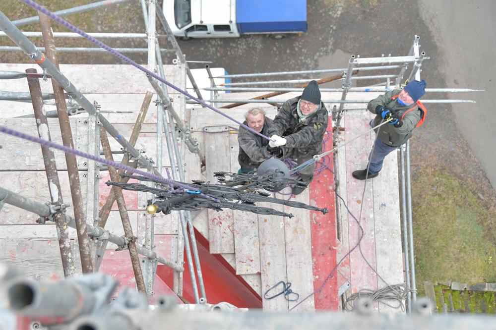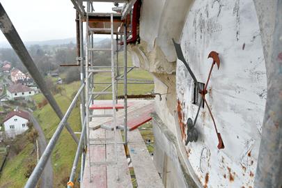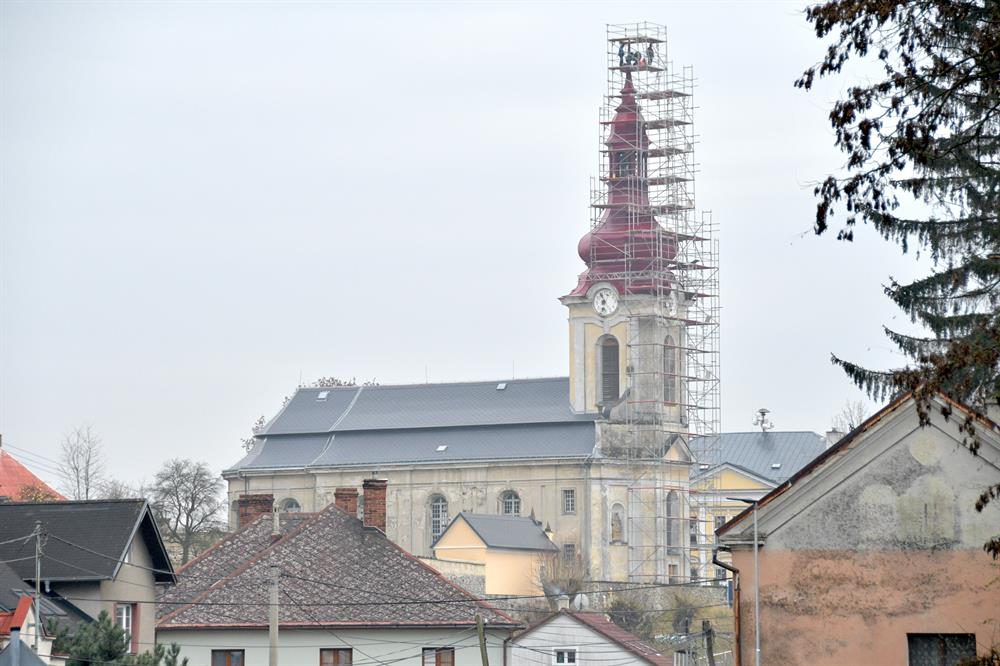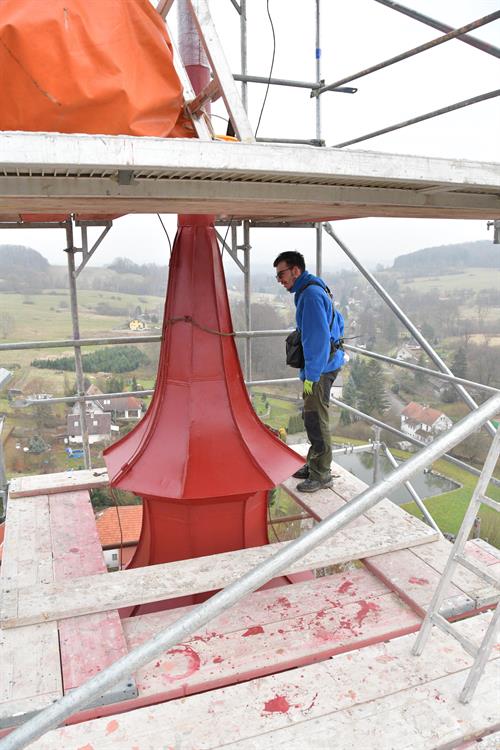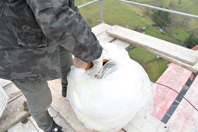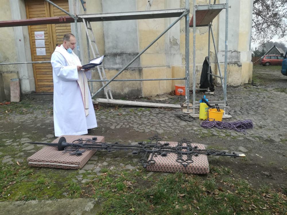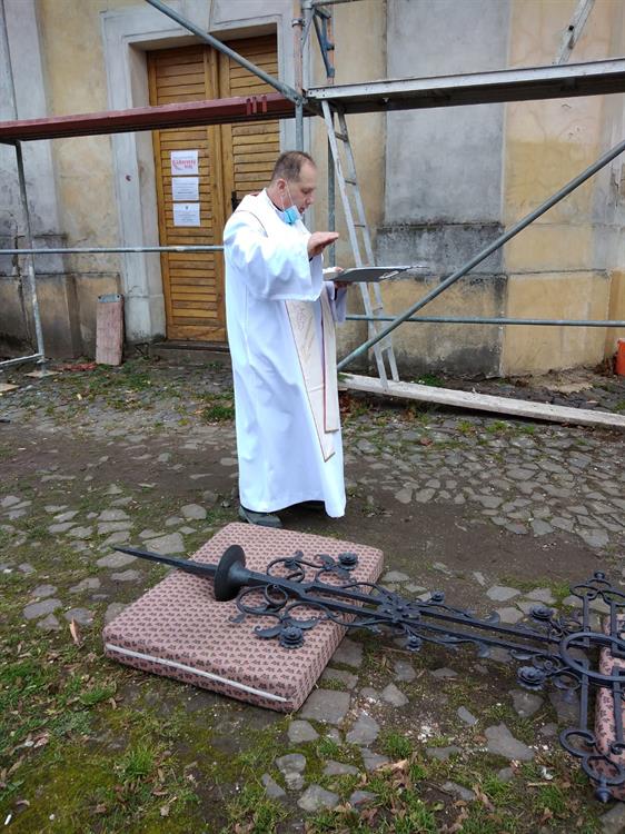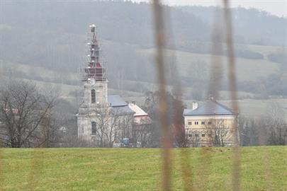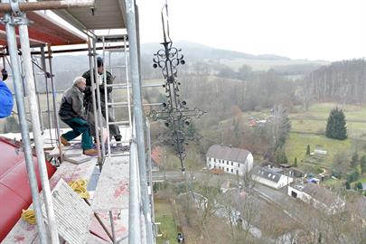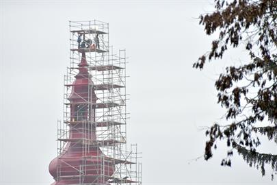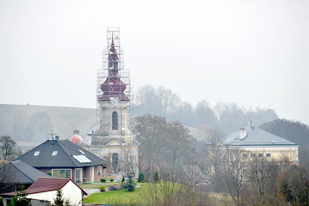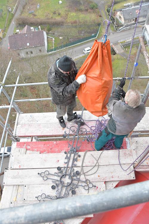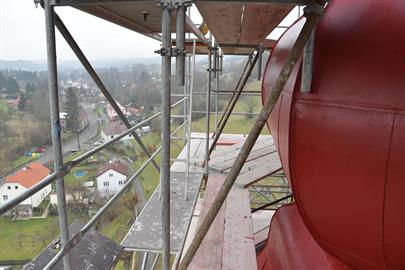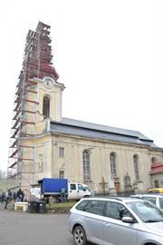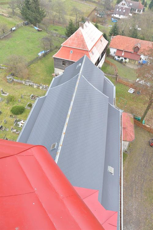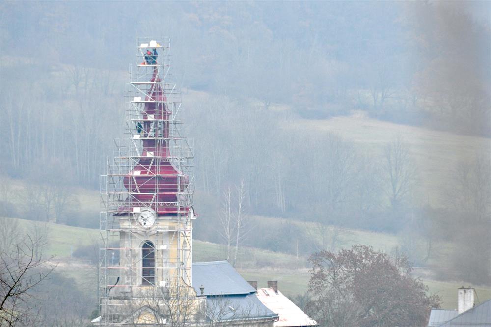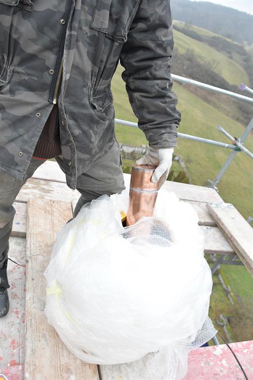 Uložení časových schránek do špice věže kostela ve Volfarticích