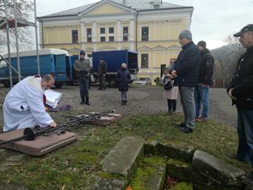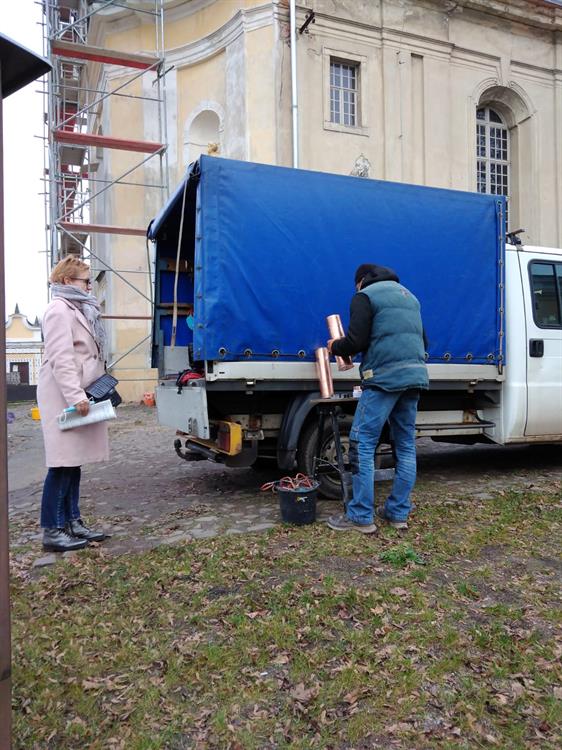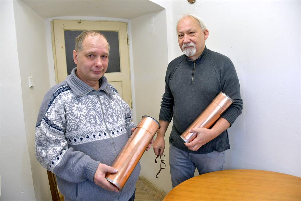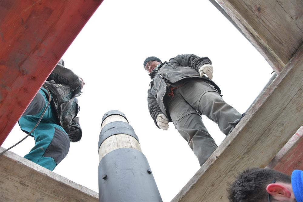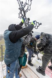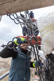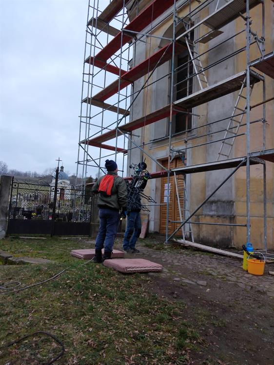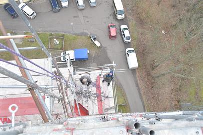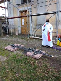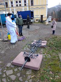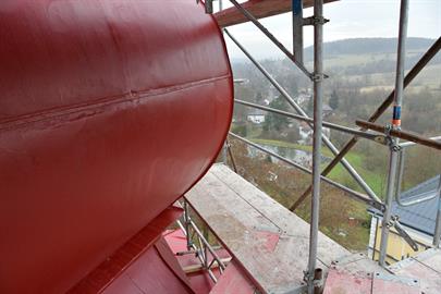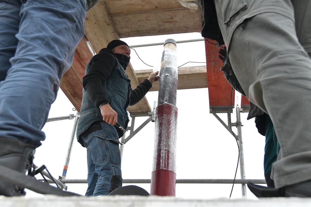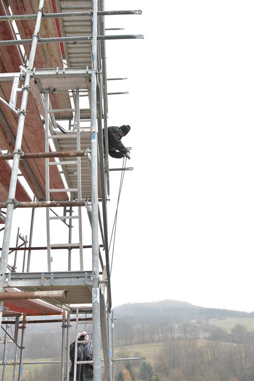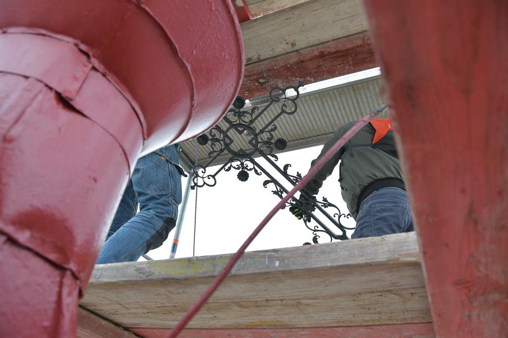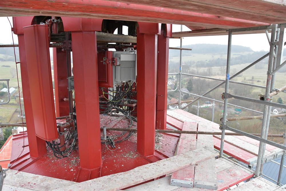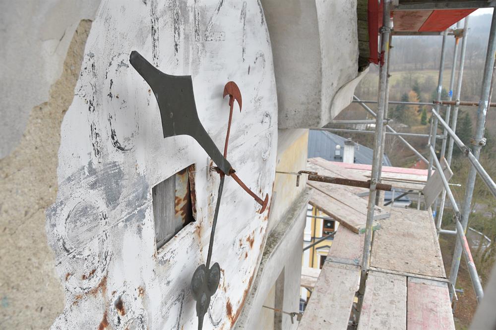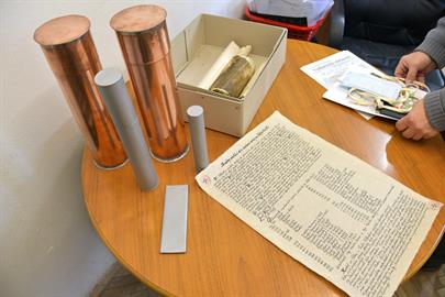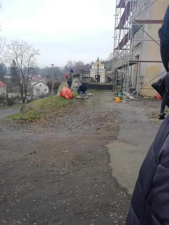 Uložení časových schránek do špice věže kostela ve Volfarticích