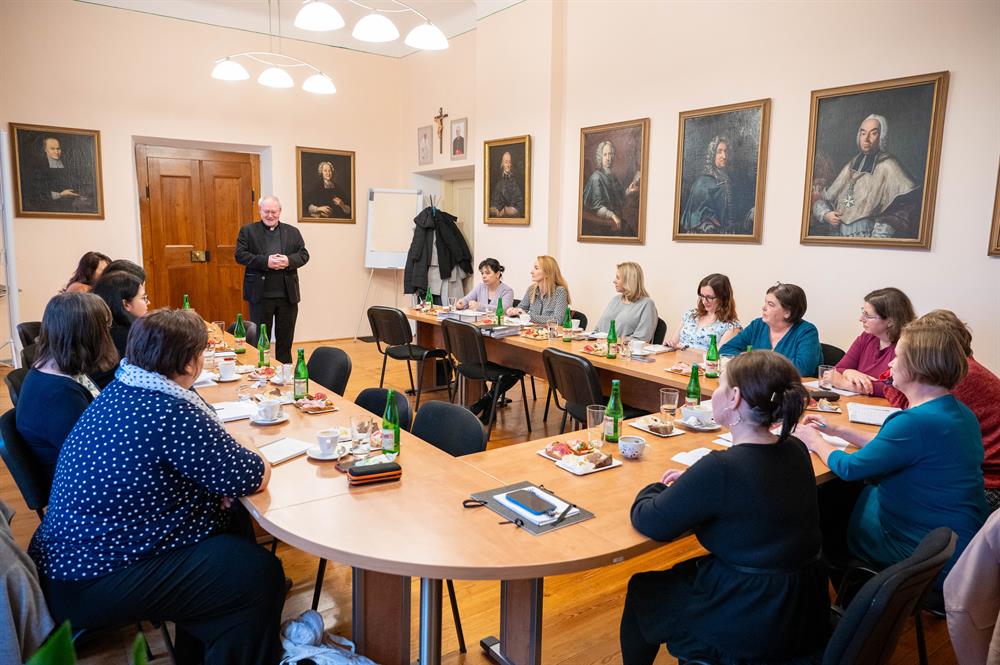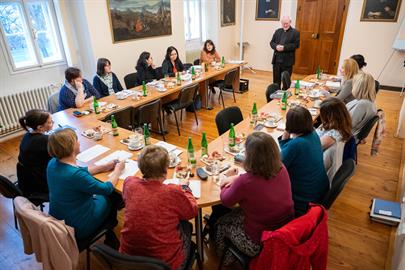 V pondělí 5. února 2024 se od 10 hodin na biskupské kurii v Litoměřicích konalo setkání vikariátních účetních pod vedením Ing. Ludmily Sedláčkové a Bc. Elišky Kocurové. Paní účetní se do Litoměřic sjely v plném počtu, aby prodiskutovaly důležité otázky týkající se změn v daňové legislativě a jejich konkrétní dopady, a také aby probraly různé záležitosti, které jsou aktuálně k řešení. Zasedání přišel navštívit také delegát ad omnia kanovník Martin Davídek, aby je povzbudil v další činnosti. Vikariátní účetní připomněly, že jejich další setkání se bude konat v klášteře v Hejnicích, kde proběhne školení daňového poradce. Ať se vikariátním účetním daří a jejich práce přináší i nadále plody při správě farností i diecéze.