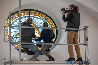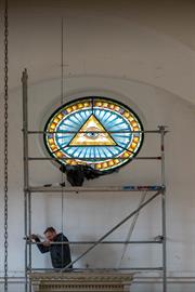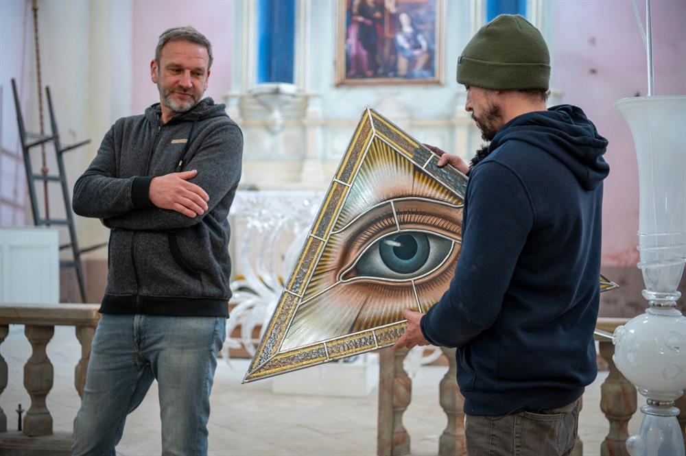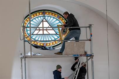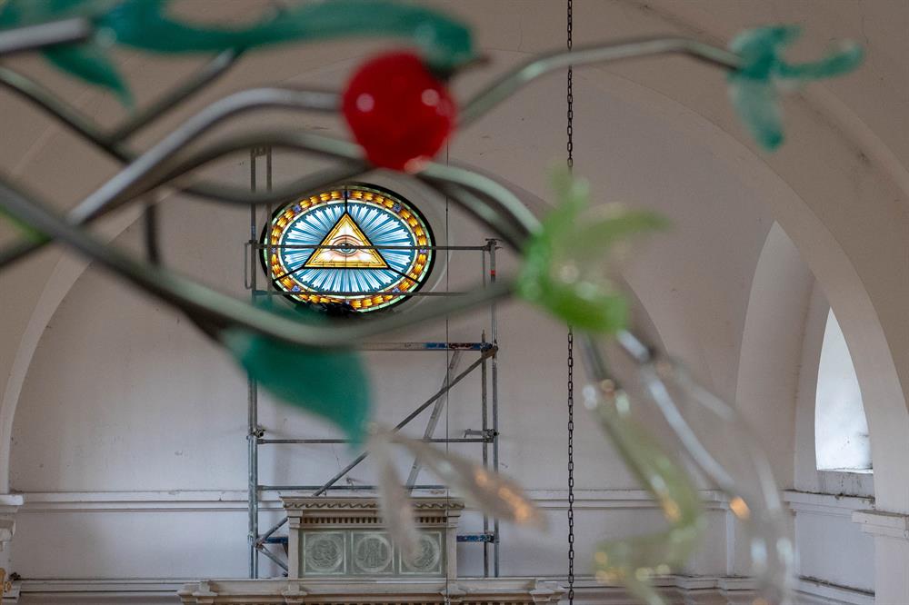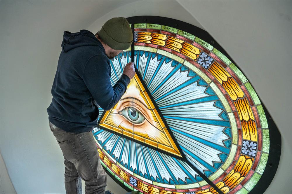 V Kunratickém Křišťálovém chrámu září nová vitráž Božího oka