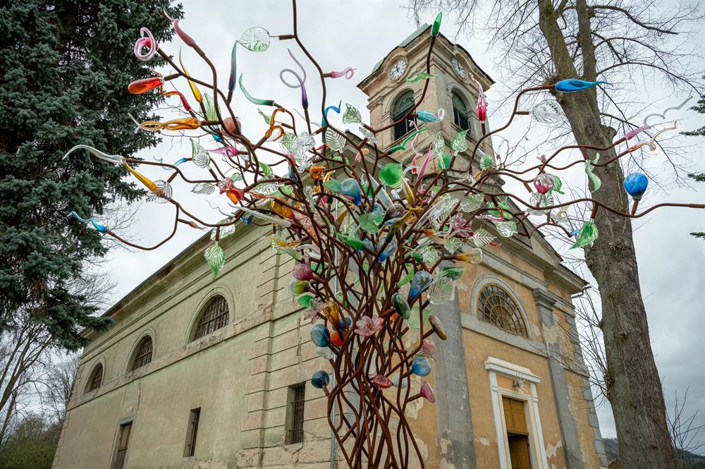 Ve středu 3. dubna 2024 v Křišťálovém chrámu v Kunraticích u Cvikova byla instalována nová vitráž Božího oka vytvořená podle originálu, který byl nalezen v loňském roce ukrytý mezi dvěma zdmi kostela. Původní vitráž z přelomu 19. a 20. století umístili skláři do skleněné vitríny v prostoru lodi kostela tak, aby k ní mohli návštěvníci přistoupit a zblízka si ji prohlédnout. Autorem originálu byl Richard Schlein ze Žitavy a Hrádku nad Nisou. Nově vytvořenou věrnou kopii již umístěnou do stěny kostela nad hlavním oltářem přijede v neděli 7. dubna 2024 v 16 hodin požehnat litoměřický biskup Mons. Stanislav Přibyl.