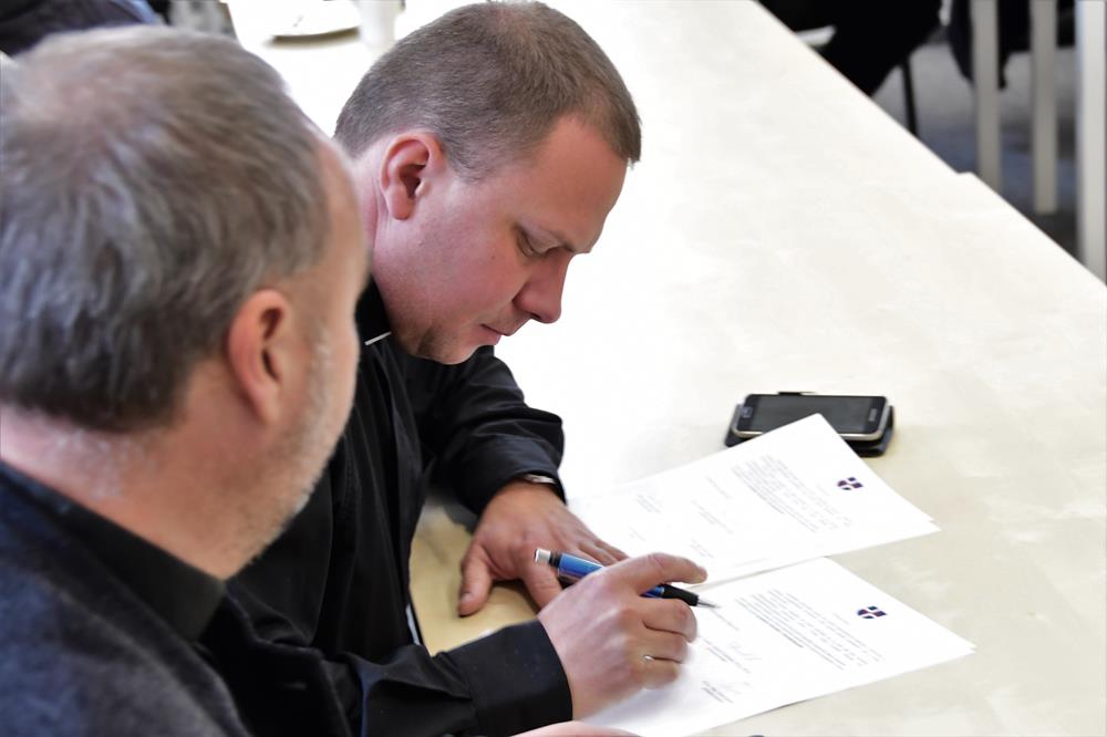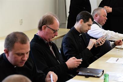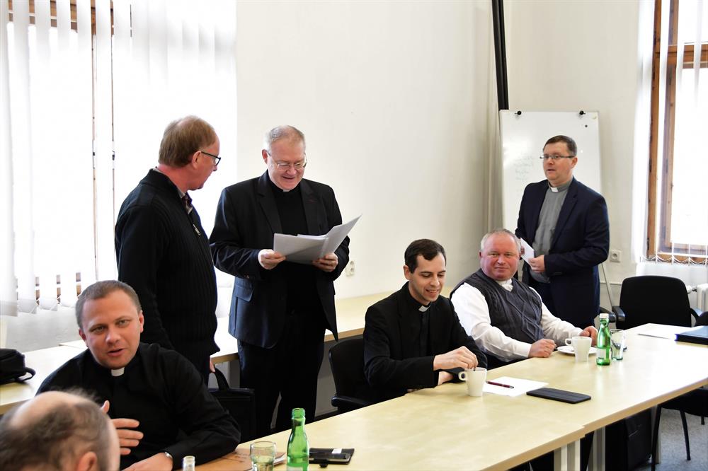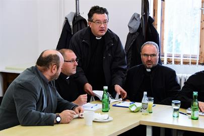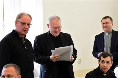 okrskových vikářů, kněžské rady a sboru konzultorů. Přítomní kněží s diecézním biskupem Mons. Janem