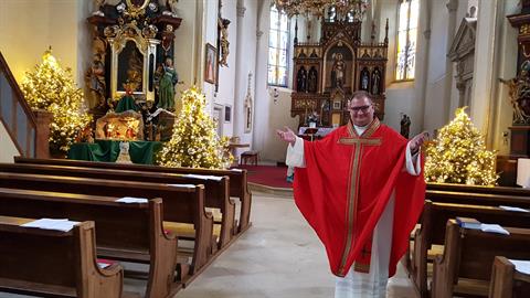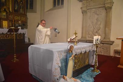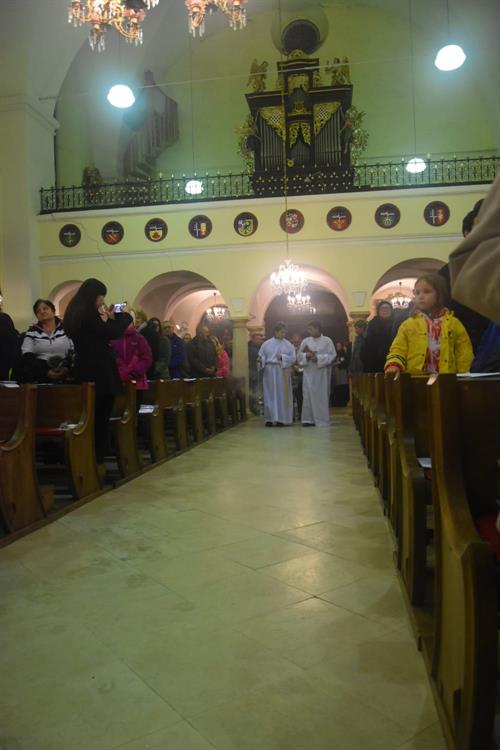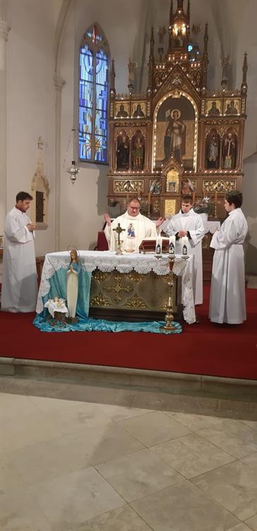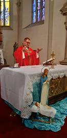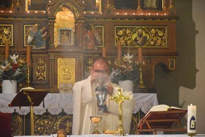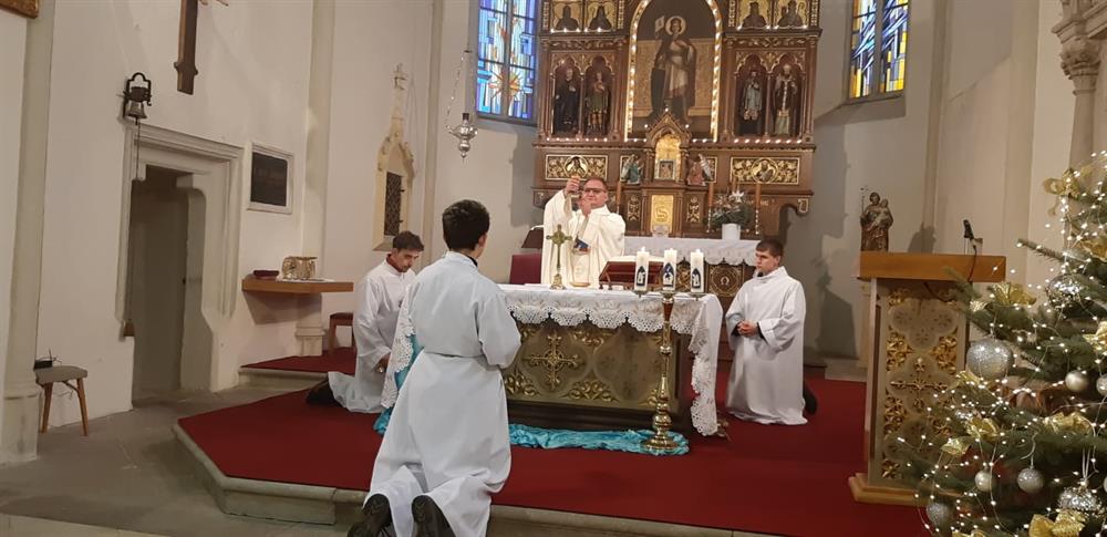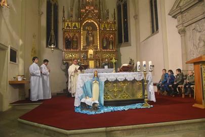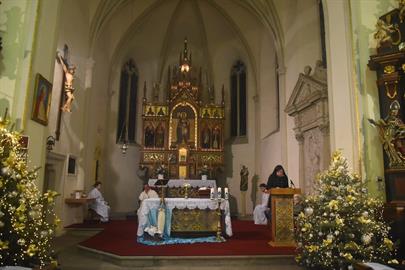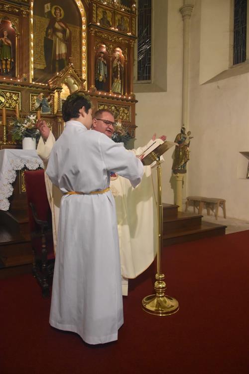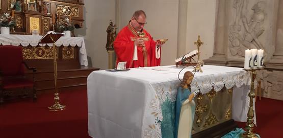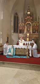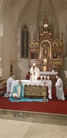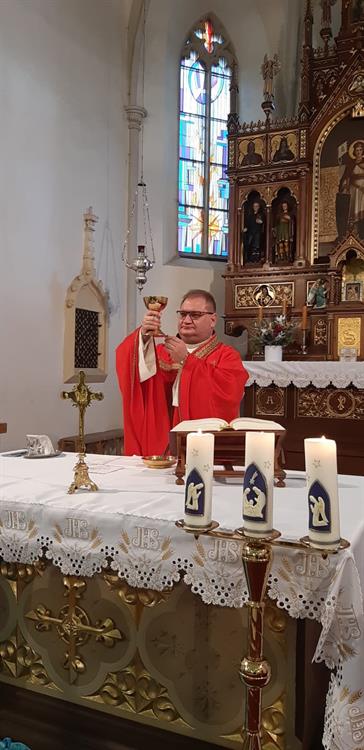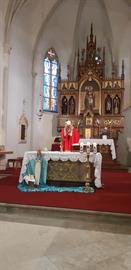 mší svatou se zpěvem místního sboru. Ve slavnostně vyzdobeném