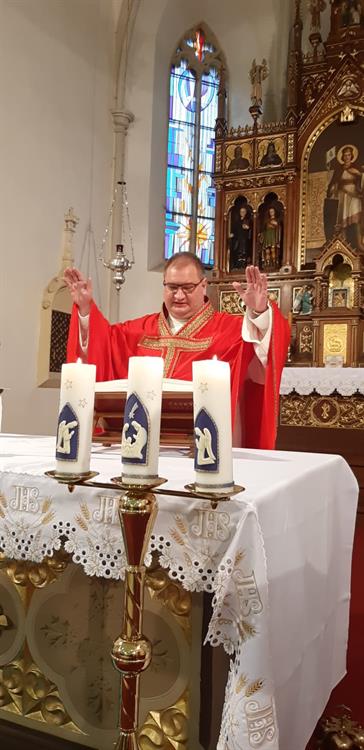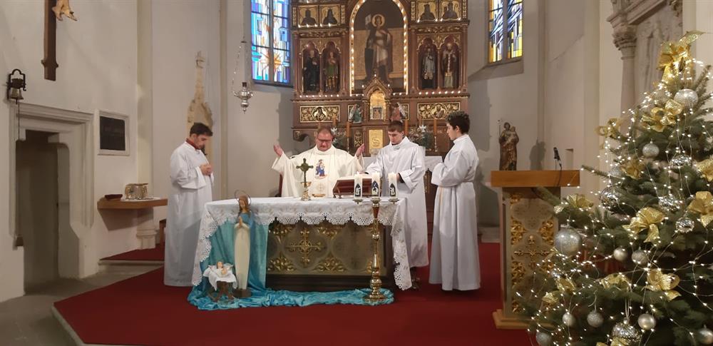 kostele sv. Václava R.D. Tomasz Dziedzic požehnal nový betlém, který bude k vidění