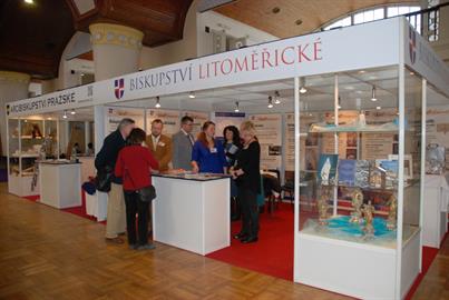 Stánek biskupství krátce po zahájení veletrhu. Foto: Jana Michálková