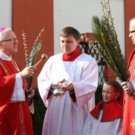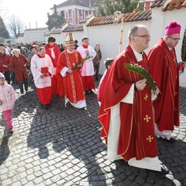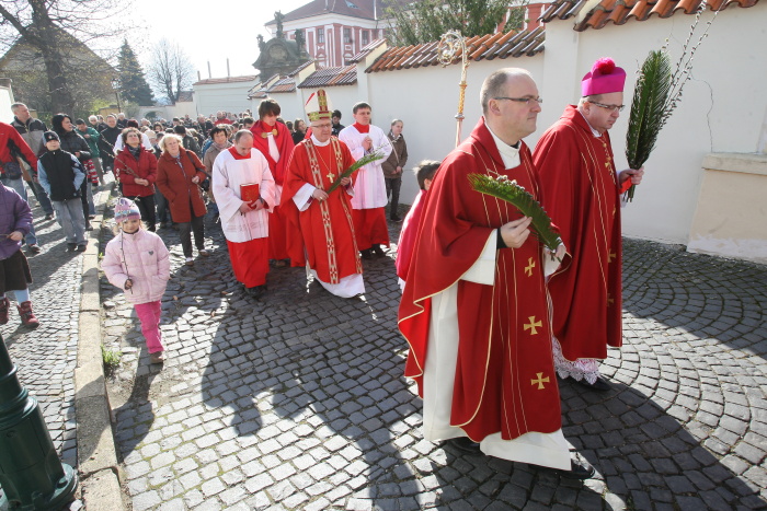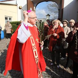 Květná neděle, 1. duben 2012, žehnání ratolestí a mše svatá, litoměřický biskup Mons. Jan Baxant, katedrála sv. Štěpána, Litoměřice