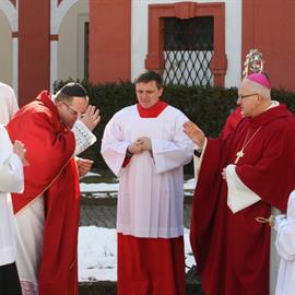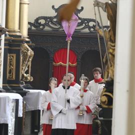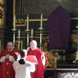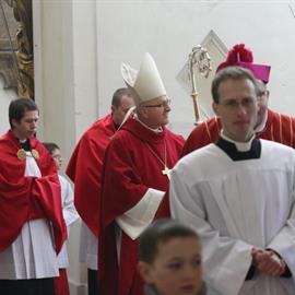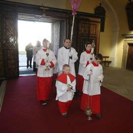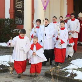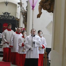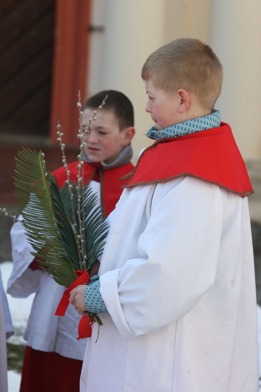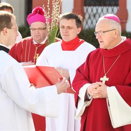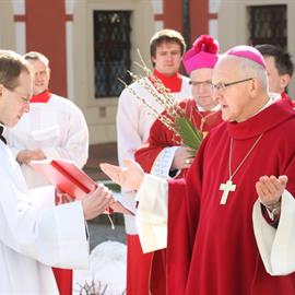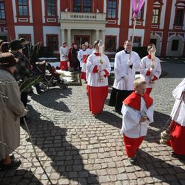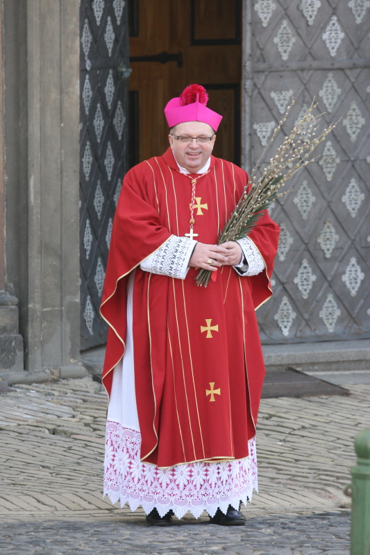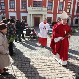 Květná neděle, žehnání ratolestí a mše svatá, litoměřický biskup Mons. Jan Baxant, 24. března 2013, nádvoří biskupské rezidence a katedrála sv. Štěpána, Litoměřice