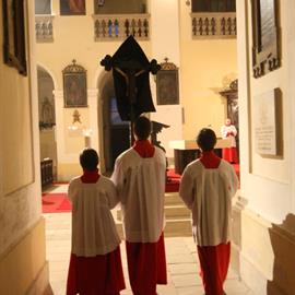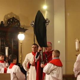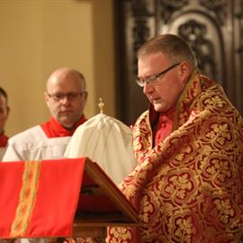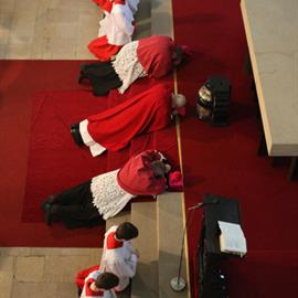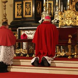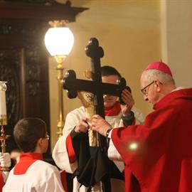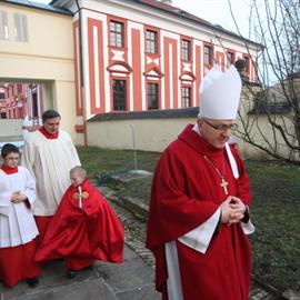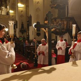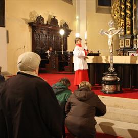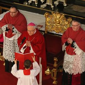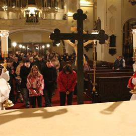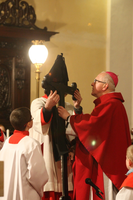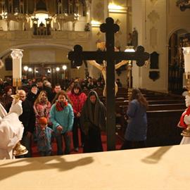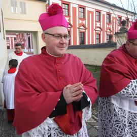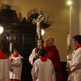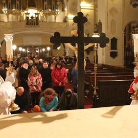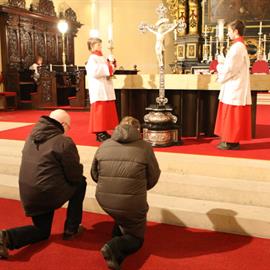 Velký pátek, obřady uctívání kříže, pašije, litoměřický biskup Mons. Jan Baxant, 29. března 2013, katedrála sv. Štěpána, Litoměřice